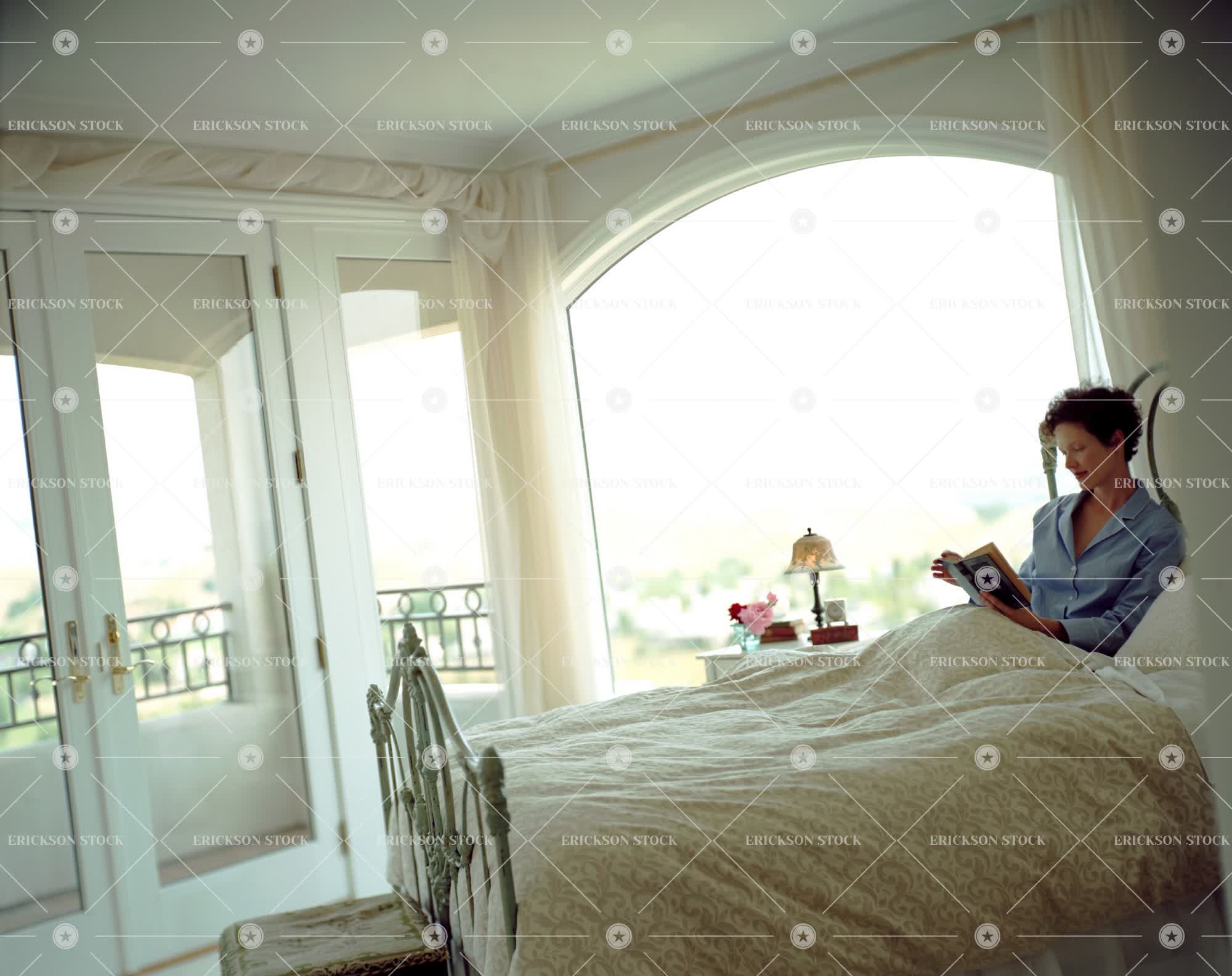 Tags adult, bed, bedroom, book, canted angle, comfort, content, copy space, copy space right, day, deck, door, doorframe, doorway, entrance, entry, entryway, entryways, female, frame, french door, french doors, glass, half length, home interior, home interiors, horizontal, in bed, indoor, indoors, inside, mature adult, mid adult, negative space, negative space right, oblique angle, one person, people, person, reading, relax, Relaxation, relaxed, relaxes, relaxing, tilt, tilted angle, waist up, window, windows, woman
