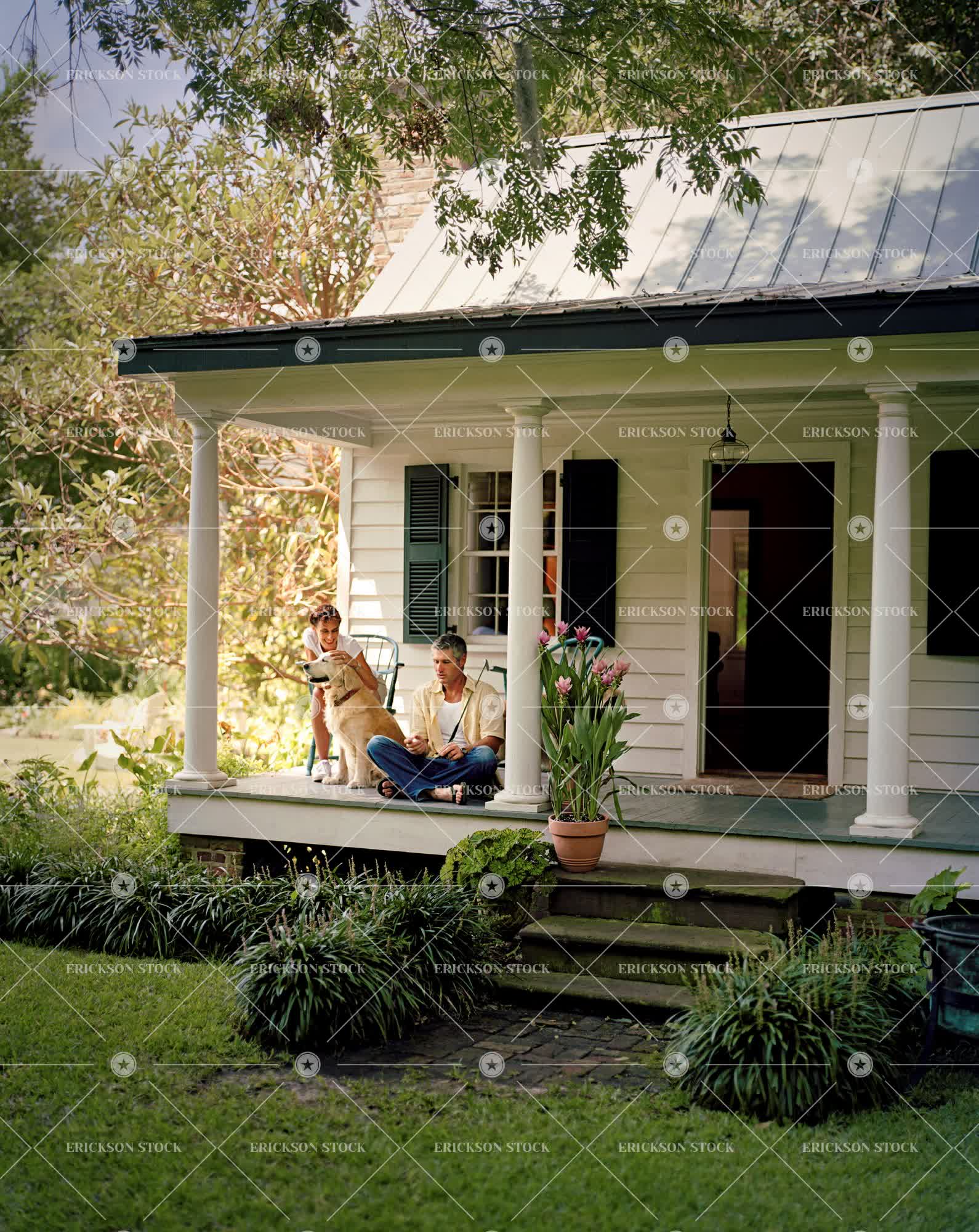 Tags adult, animal, backyard, caucasian, cottage, couple, day, deck, dog, domestic, female, front or back yard, frontyard, frontyards, full length, garden, gardens, grass, happiness, happy, heterosexual, heterosexual couple, heterosexual couples, home, homes, house, houses, Husband, husband and wife, husbands, lawn, male, man, marriage, married, mature adult, mid adult, one animal, outdoor, outdoors, outside, palmetto, partner, person, pet, pets, porch, porches, relationship, relationships, sit, sitting, smile, smiling, spouse, spouses, together, togetherness, two people, vertical, wife, wives, woman