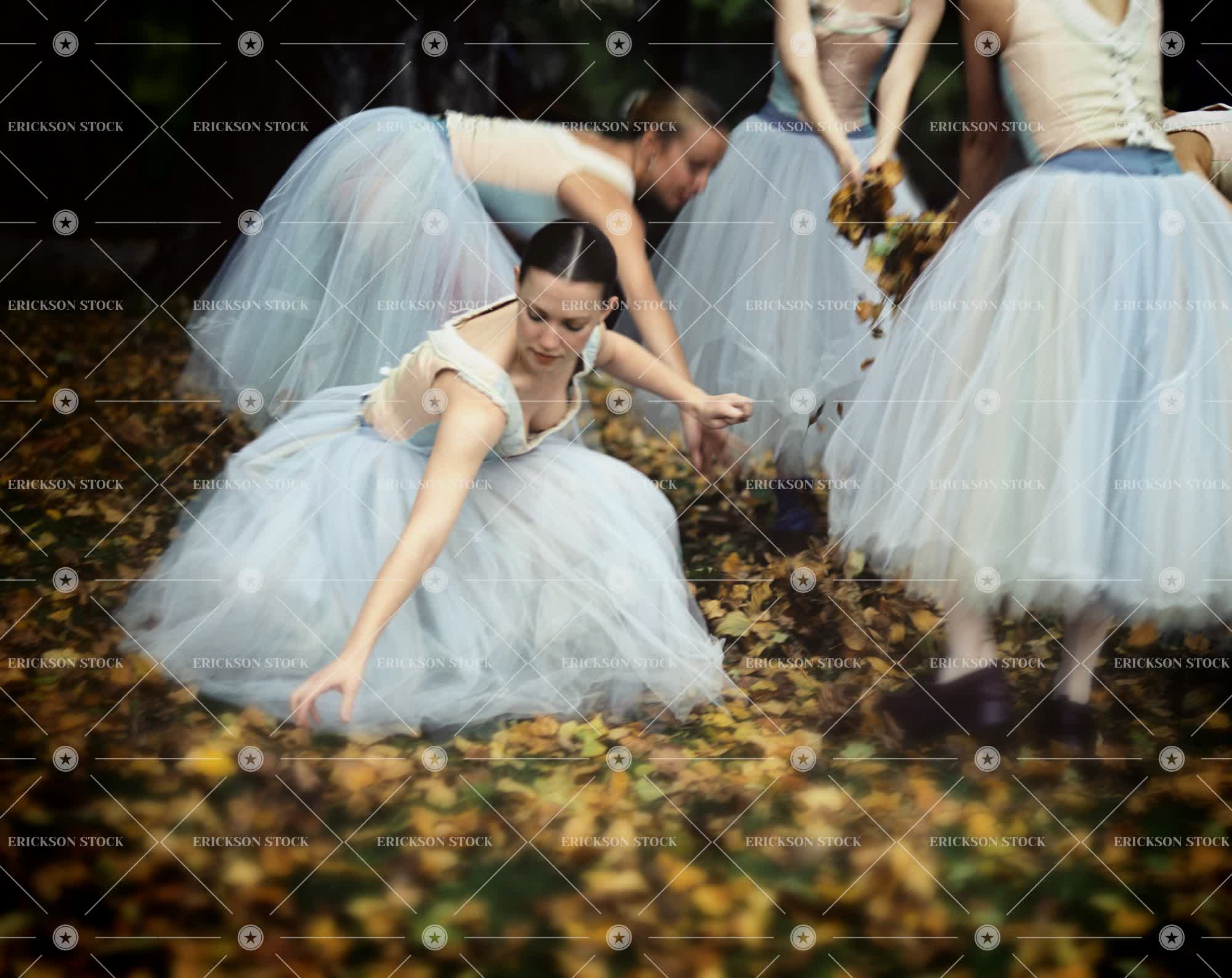 A group of ballerinas playing with leaves.