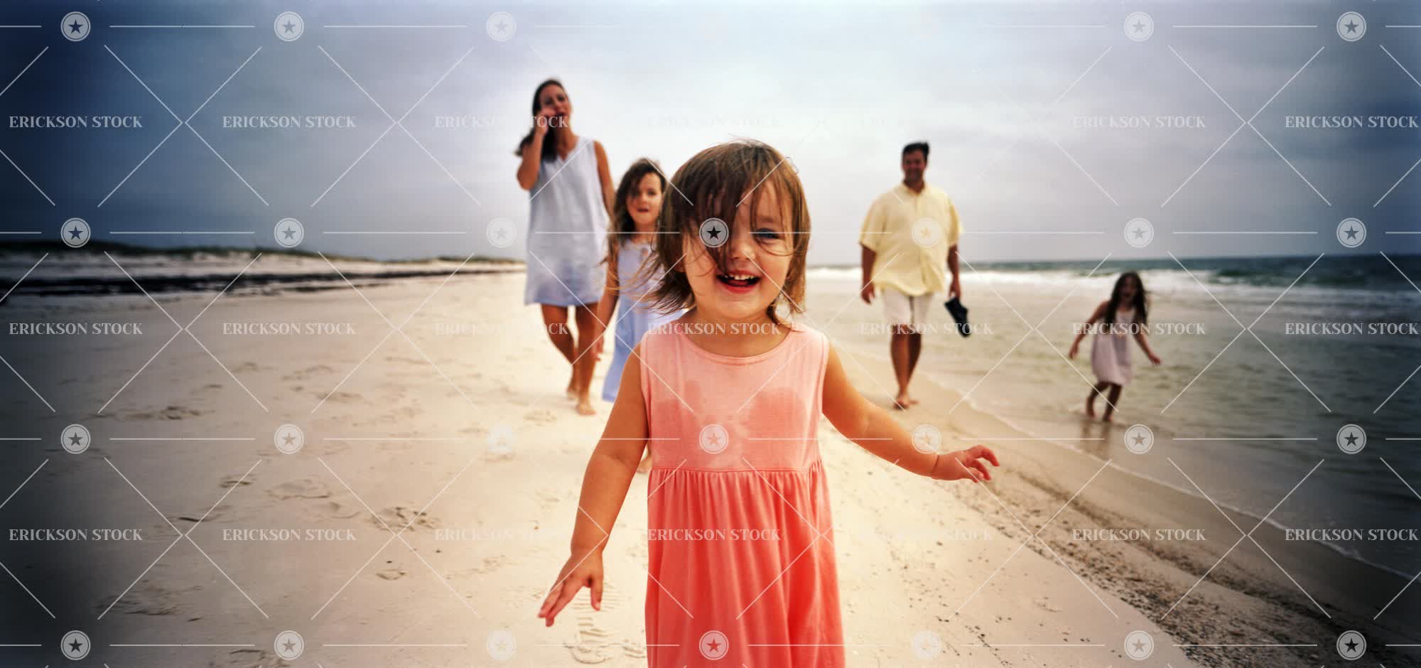 Family walking along the beach