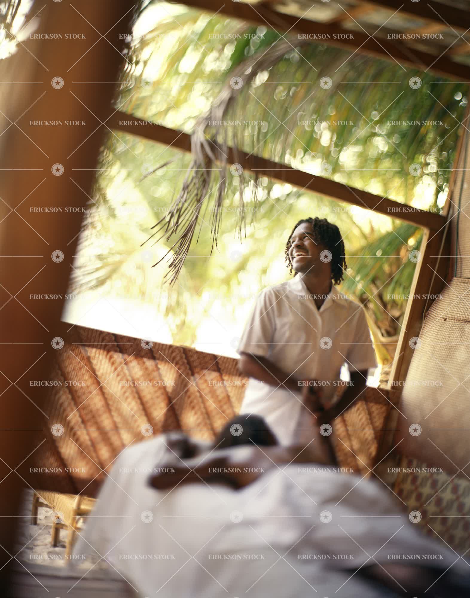 Tags adult, african american, alternative therapy, bare chested, beach, brunette, casual clothes, cheerful, day, deck, delight, enjoyment, female, Fun, getting away from it all, Growth, hand in hand, happiness, happy, having fun, health spa, hold hand, hold hands, holding hand, Holding hands, holiday, holidays, indulgence, indulgent, indulging, job, jobs, joy, joyful, leisure, leisure activities, leisure activity, lie down, lie on front, luxurious, luxury, Lying down, lying on front, male, man, massage, massage table, massage tables, massage therapist, massage therapists, massages, massaging, masseur, masseuse, mid adult, natural, nature, occupation, occupations, outdoor, outdoors, outside, palm, palm tree, palm trees, palms, pampering, pampers, people, person, place of work, porch, porches, recreation, recreational pursuit, recreational pursuits, relax, Relaxation, relaxed, relaxes, relaxing, selective focus, semi dress, shirtless, smile, smiling, spa, spa treatment, spa treatments, spas, stand, standing, stands, three quarter length, tourist destination, tourist destinations, towel, towels, travel, travel destination, travel destinations, treatment, treatments, Tree, trees, tropical, tropical climate, two people, Vacation, vacations, veranda, verandah, verandahs, verandas, vertical, wellbeing, wellness, woman, work, working, young adult