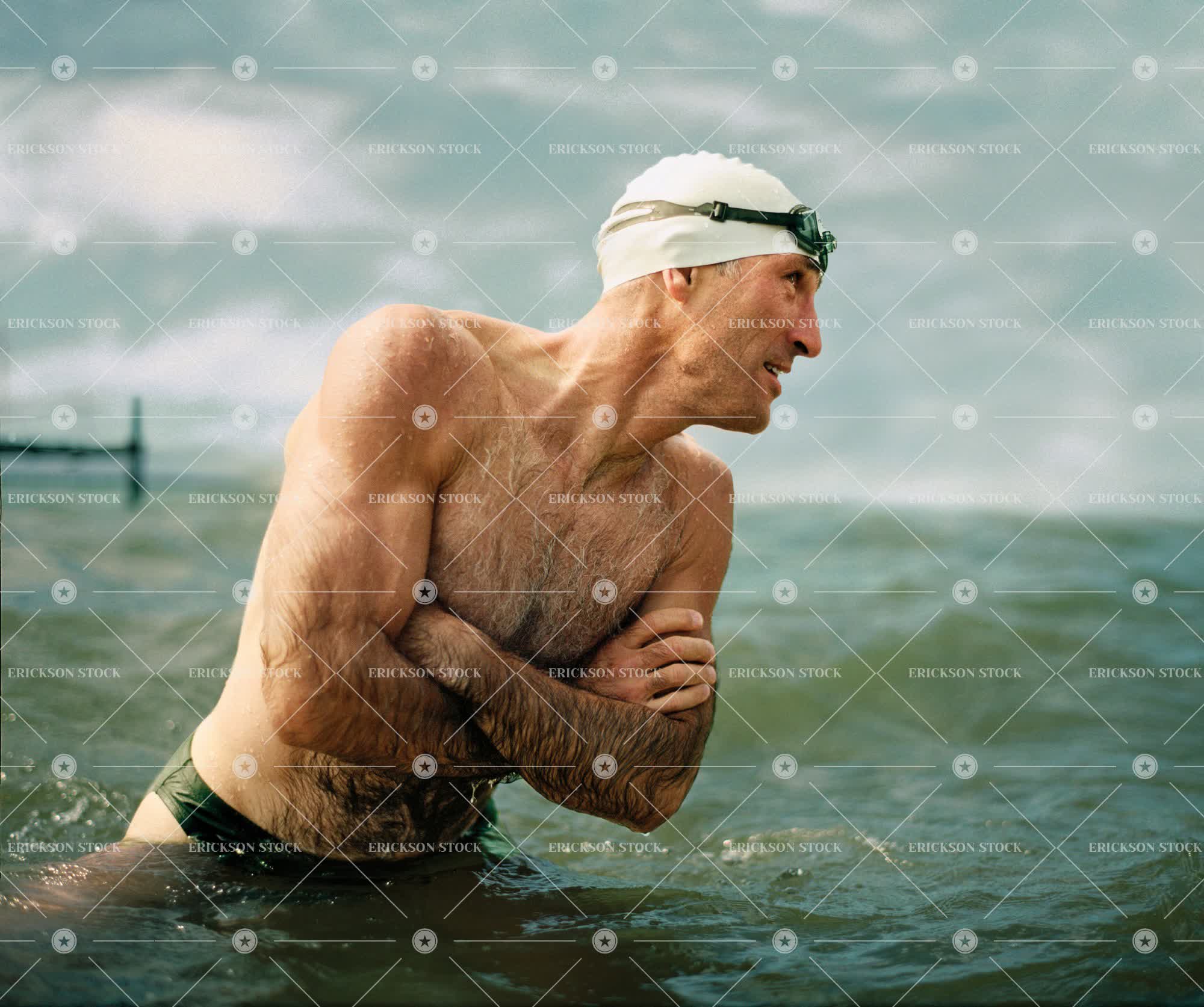 Tags adult, amusement, arm, arms crossed, bare, bare chested, caucasian, cheerful, chest, chill, cloud, cold, competition, cool, copy space, cross, day, delight, enjoyment, exterior, exteriors, fellow, fellows, fit, fitness, front view, front views, Fun, getaway, getaways, glad, gladly, gladness, guy, guys, happiness, happy, health, heat, horizontal, horizontally, horizontals, iron man, Lake, lakes, leisure activities, leisure activity, lighthearted, lightheartedly, lightheartedness, male, man, marine, mature adult, mid adult, midsummer, midsummers, motion, motions, movement, movements, negative space, negative spaces, ocean, oceans, one person, only males, only men, outdoor, outdoors, outside, pastime, pastimes, people, Physical fitness, pleased, profile, profiles, qualifying, record, recreation, recreational, recreations, rejoice, rejoiced, rejoices, rejoicing, satisfaction, satisfied, satisfies, satisfy, satisfying, sea, seas, shirtless, Side view, side views, smile, smiled, smiles, smiling, sport, Sports, standing, stood, swam, swim, swimmer, swimmers, swimming, swimming cap, swims, swimwear, vacationing, waist up, water, water sport, waters, western european, white space