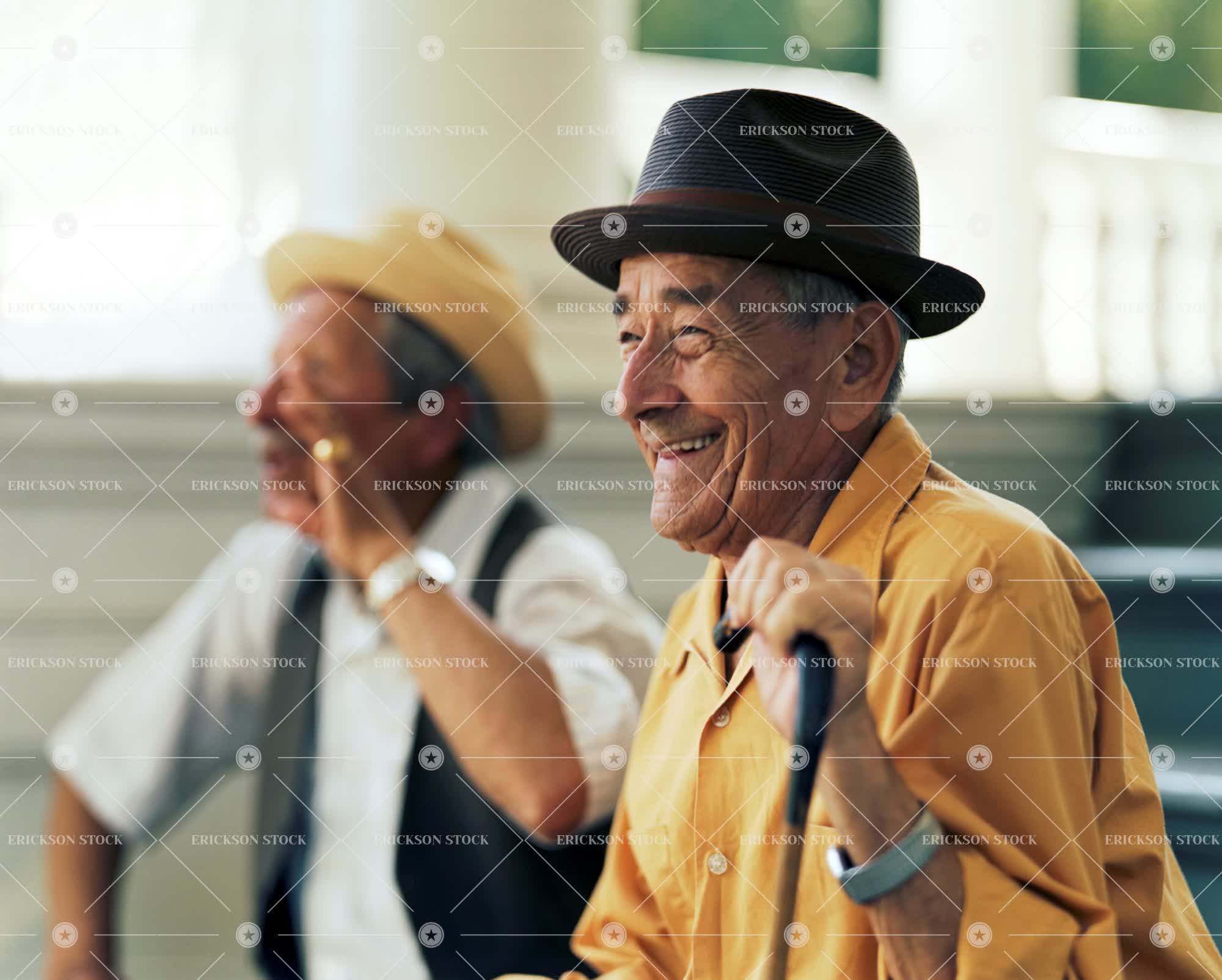 Tags adult, cane, cheerful, copy space, copy space bottom, day, delight, elderly, enjoyment, friend, friends, friendship, grin, grinning, grins, happiness, happy, hat, hats, head, head & shoulders, head and shoulders, head shot, headshot, hold, holding, horizontal, indoor, indoors, inside, joy, joyful, latin american, laughing, male, man, mature adult, negative space, negative space bottom, old, person, selective focus, senior adult, shoulders, smile, smiling, together, togetherness, toothy smile, two people, walking stick