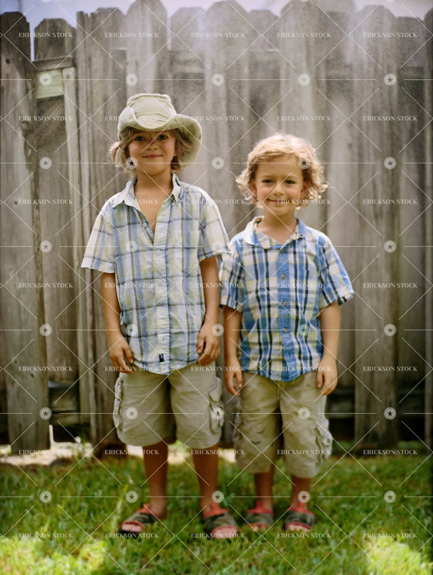 Tags bliss, boy, brother, calm, caucasian, cheerful, child, companion, confident, cowboy hat, day, delight, elementary age, enjoyment, family, fellow, fellows, Fence, fences, folk, folks, friend, friendliness, friendly, friends, friendship, friendships, front view, full length, gaieties, gaiety, gaily, garden, gardens, gay, glad, gladly, gladness, gleeful, gleefully, gleefulness, gratification, gratifications, gratified, gratify, gratifying, gratifys, happiness, happy, jointly, jollied, jollies, jolly, joy, joyful, joyous, juvenile, juveniles, kid, kids, lighthearted, lightheartedly, lightheartedness, living, living being, looking at camera, male, merriment, merry, object, objects, only boys, only children, outdoors, peace, peaceful, peacefully, peacefulness, people, person, persons, pleased, pleasing, pleasure, portrait, Portraits, portraiture, preschooler, rejoice, rejoiced, rejoices, rejoicing, relationship, relationships, relative, Relatives, satisfaction, satisfied, satisfies, satisfy, satisfying, serene, serenity, sibling, siblings, standing, stood, sunlight, sunny, sunshine, sunshines, sunshining, sunshiny, thing, together, togetherness, tranquil, tranquility, vertical, vertically, verticals, wall, walled, walls, western european, Yard, yards, youth