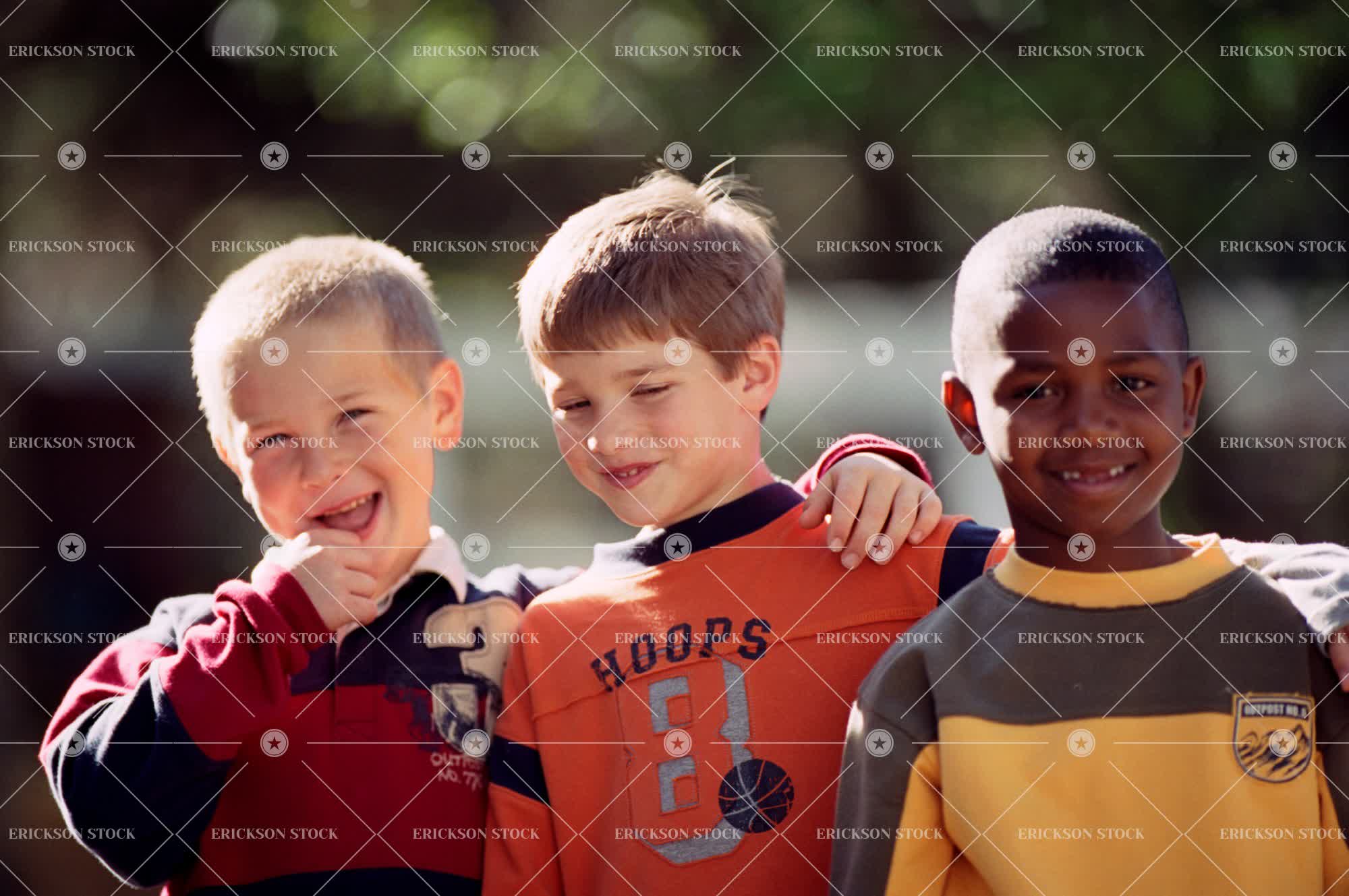 Tags affectionate, african american, arm around, boy, carefree, casual clothes, caucasian, cheerful, child, close, companion, cuddle, day, delight, elementary age, embrace, embraced, embracing, enjoyment, exhilarate, exhilarated, exhilarating, exuberance, exuberant, Eye contact, friend, friends, friendship, front view, half length, hanging out, happiness, happy, horizontal, hug, hugging, Innocence, innocent, international, joy, joyful, joyous, juvenile, kid, kids, leisure, look at camera, looking at camera, male, males only, mate, mates, minor, minors, multi-ethnic, nature, non-urban, non-urban scene, only boys, only children, only males, outdoor, outdoors, outside, people, pre-adolescent, pre-adolescents, Pre-teen, pre-teens, preteen, preteens, Pride, prideful, pridefulness, recreation, relaxed, selective focus, silliness, silly, smile, smiles, smiling, stand, standing, together, togetherness, tween, waist up, youth