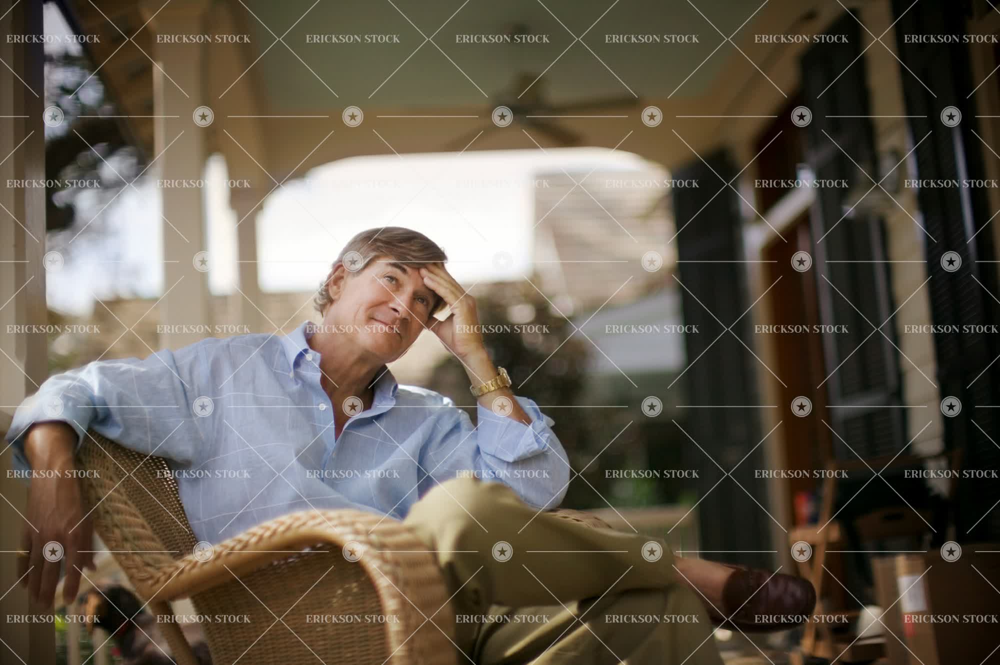Tags caucasian, chair, copy space, day, domestic, frustration, head in hands, horizontal, house, lifestyle, looking up, low angle view, man, mature adult, only males, only men, outdoors, palmetto, people, porch, Reflection, sitting, stress, thinking, three quarter length