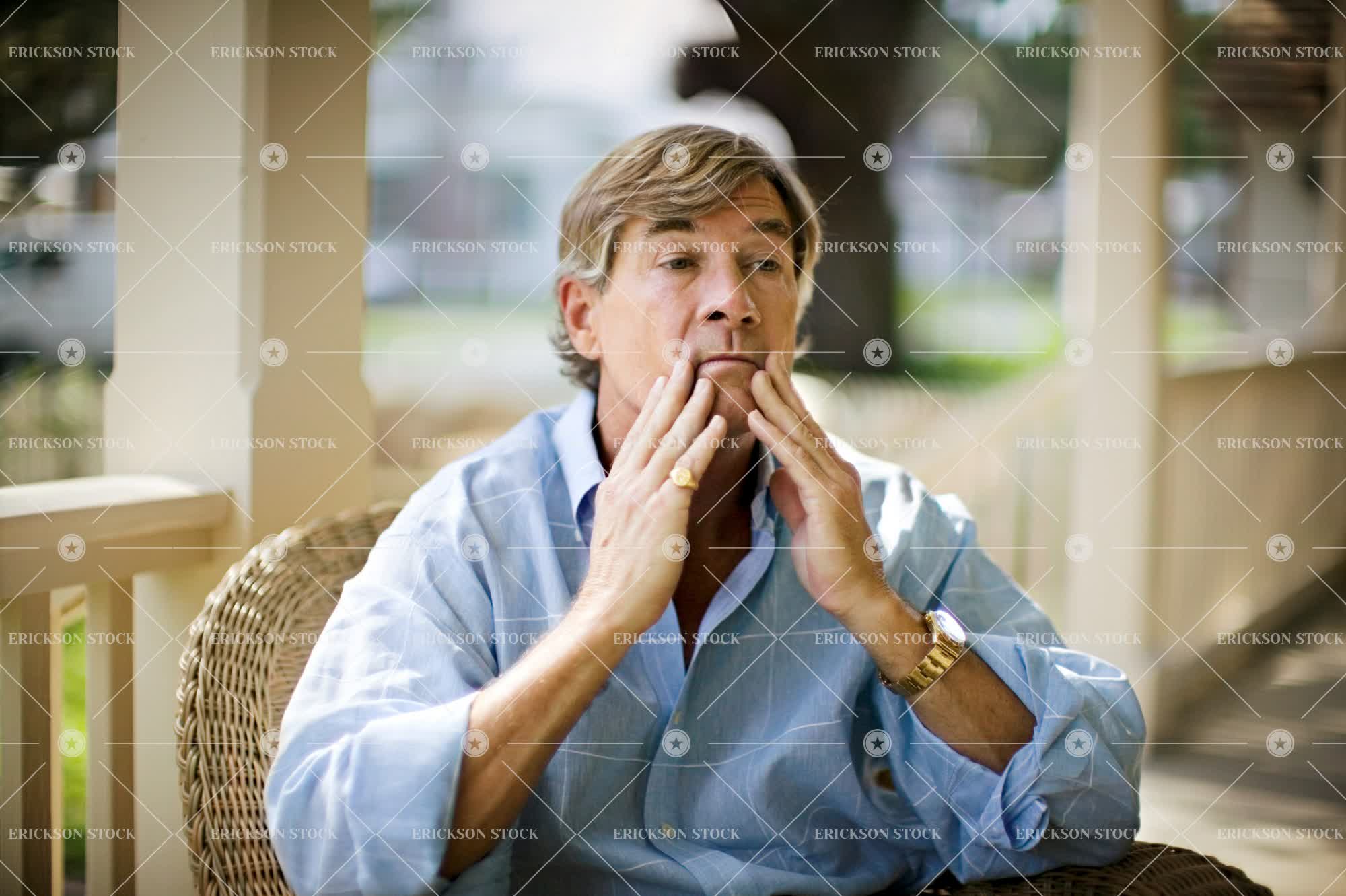 Tags answer, bad news, button down shirt, casual, caucasian, day, domestic, doubt, estate, fear, fright, frightened, future, grief, grieve, grieving, head in hands, horizontal, jewelry, lifestyle, lonliness, man, mature adult, money, mortgage, one person, only males, only men, outdoors, overhead, palmetto, people, planning, porch, pressure, pressures, problem, problems, real people, responsibilities, sad, sadness, shock, sitting, south, stress, stressed, thinking, waist up, Watch, worries, worry