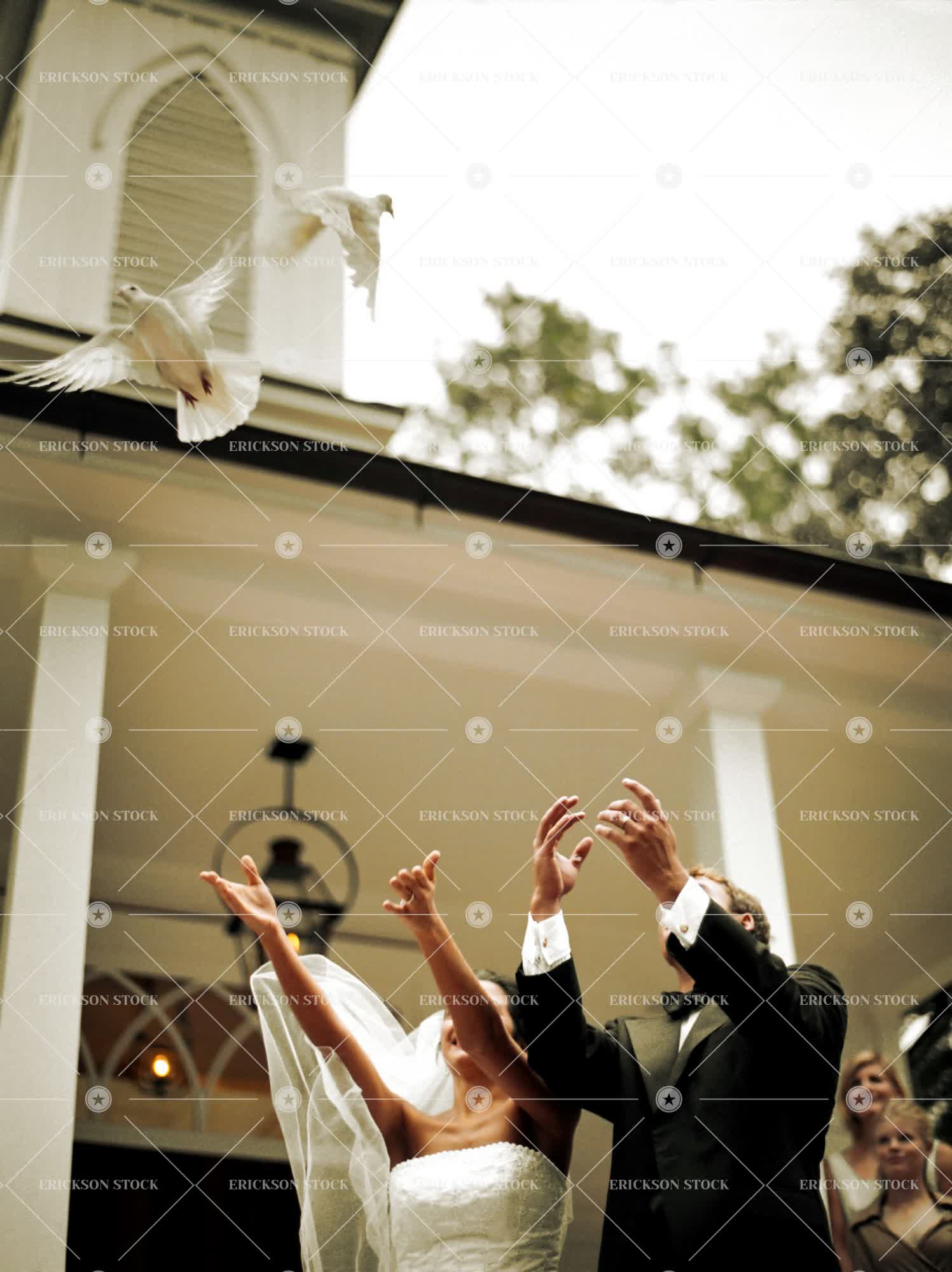 Tags adult, animal, arm raised, background people, bird, bride, caucasian, celebrate, day, doves, dress, female, flight, fly, flying, groom, grooms, half length, hand raised, hands raised, happiness, happy, letting go, love, loving, low angle, low angle view, male, man, marriage, mid-air, outdoor, outdoors, outside, palmetto, people, people in the background, person, pure, purity, releasing, selective focus, spread wings, spreading wings, symbols of peace, together, togetherness, two people, vertical, waist up, wedding, wedding dress, wedding dresses, weddings, white, woman