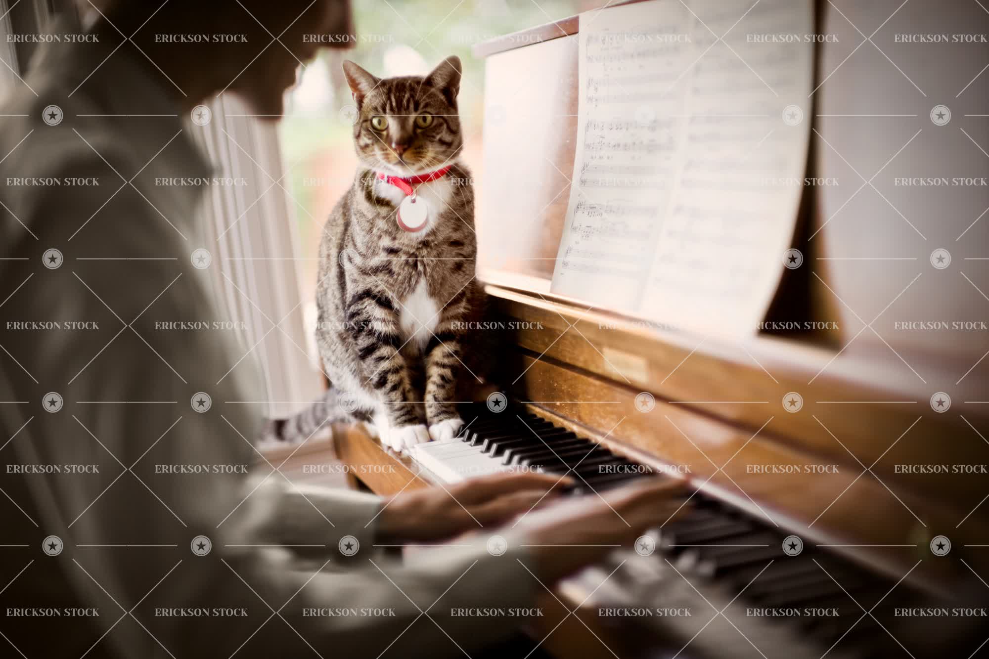 Tags animal, architectural interior, audience, building, cat, collar, companion, Cute, day, devotion, domestic, fan, fans, feline, felines, focus, focused, front view, full length, horizontal, indoor, indoors, inside, intense, intensity, interior, interiors, leisure, listen, listening, loyal, loyalty, Mammal, mammals, Music, Musical instrument, musical instruments, one person, people, person, pet, pets, piano, pianos, play, Playing, playing piano, playing the piano, Quality time, recreation, recreational, selective focus, sheet music, sight reading, sit, sitting, stare, Staring, tabby, tabby cat, tame, together, togetherness, unrecognizable, unrecognizable people, unrecognizable person, upright, urban, Watch, watching
