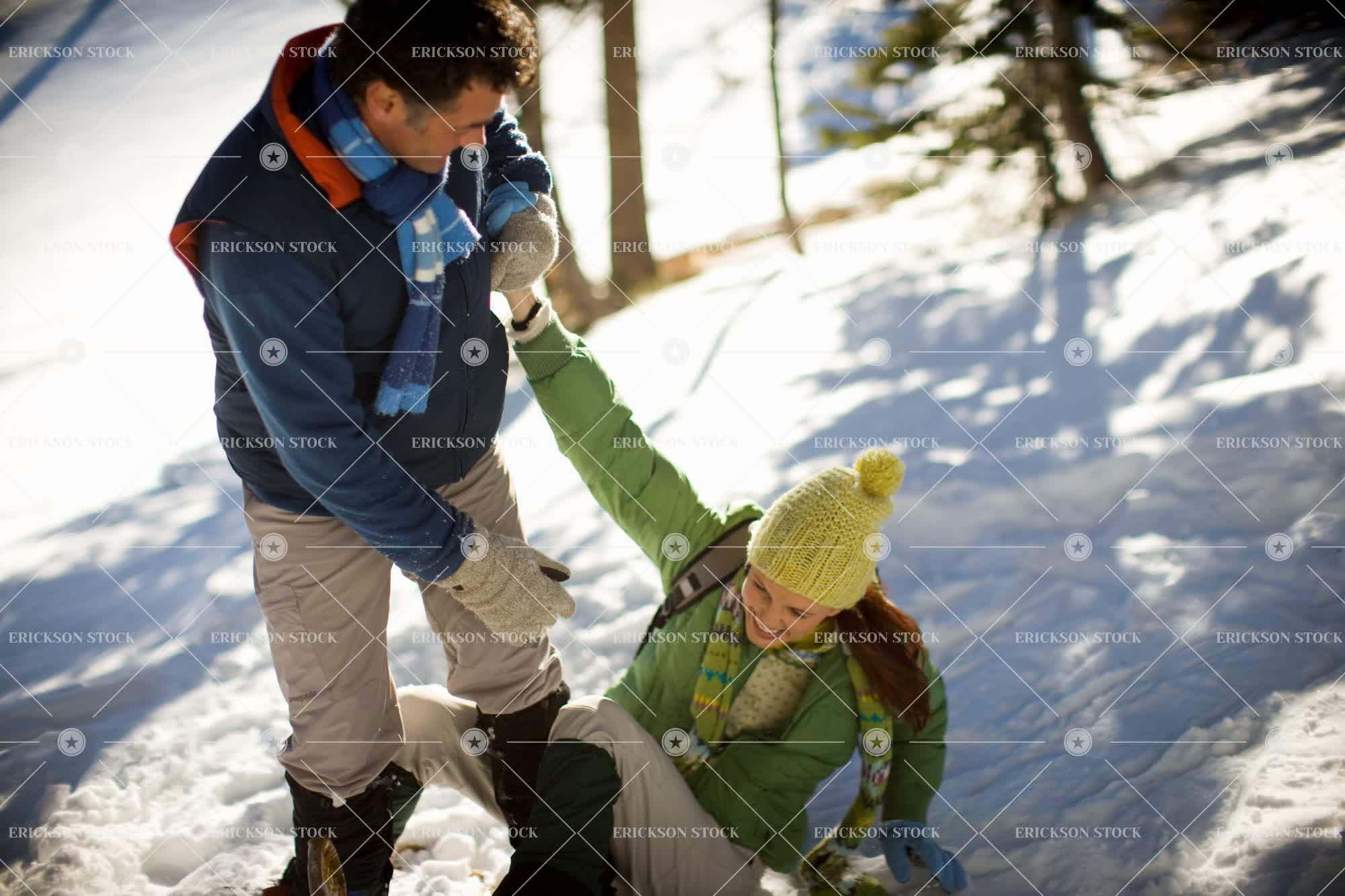Tags adult, boyfriend, canted angle, couple, day, female, focus on foreground, girlfriend, girlfriends, happiness, happy, help up, helping up, heterosexual couple, heterosexual couples, high angle, high angle view, holiday, holidays, horizontal, Husband, husband and wife, husbands, laughing, male, man, marriage, married, mature adult, mid adult, natural, nature, oblique angle, outdoor, outdoors, outside, people, person, pull up, pulling up, relationship, relationships, selective focus, smile, smiling, snow, snow covered, snowcapped, snowfall, spouse, spouses, three quarter length, tilt, tilted angle, Tree, trees, two people, Vacation, vacations, warm clothes, warm clothing, wife, wives, woman, young adult