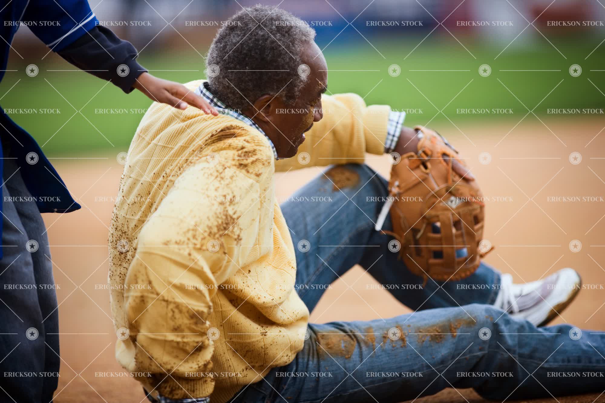 Tags adult, african american, amusement, arm, assist, ball game, baseball, baseball glove, boy, child, day, dirt, elderly, elementary age, entertainment, entertainments, exterior, exteriors, fallen, falling, falls, family, fell, fellow, fellows, full body, full length, Fun, game, games, glove, gloves, grampa, grampas, gramps, grandchild, grandchildren, granddad, granddaddy, granddaddys, granddads, grandfather, grandpa, grandparent, grandparents, grandpas, grandson, grandsons, grubbiness, grubby, guy, guys, hand, Hands, help, helped, helpful, helpfulness, helping, helps, horizontal, horizontally, horizontals, juvenile, juveniles, kid, kids, leisure, leisure activities, leisure activity, leisure time, leisurely, limb, limbs, male, man, mature adult, mess, messed, messes, messiness, messy, mid adult, mid section, midsection, of african descent, old, outdoor, outdoors, outside, pastime, pastimes, people, person, persons, played, Playful, playfulness, Playing, Practice, practiced, practices, practicing, practise, practised, practises, practising, profile, profiles, recreation, recreational, recreations, rehearsal, rehearsals, rehearse, rehearsed, rehearses, rehearsing, relationship, relationships, relative, Relatives, sat, seated, senior adult, Side view, side views, sit, sits, sitting, spare time, sport, Sports, team sport, team sports, three quarter length, together, togetherness, two people, unclean, uncleanly, youth