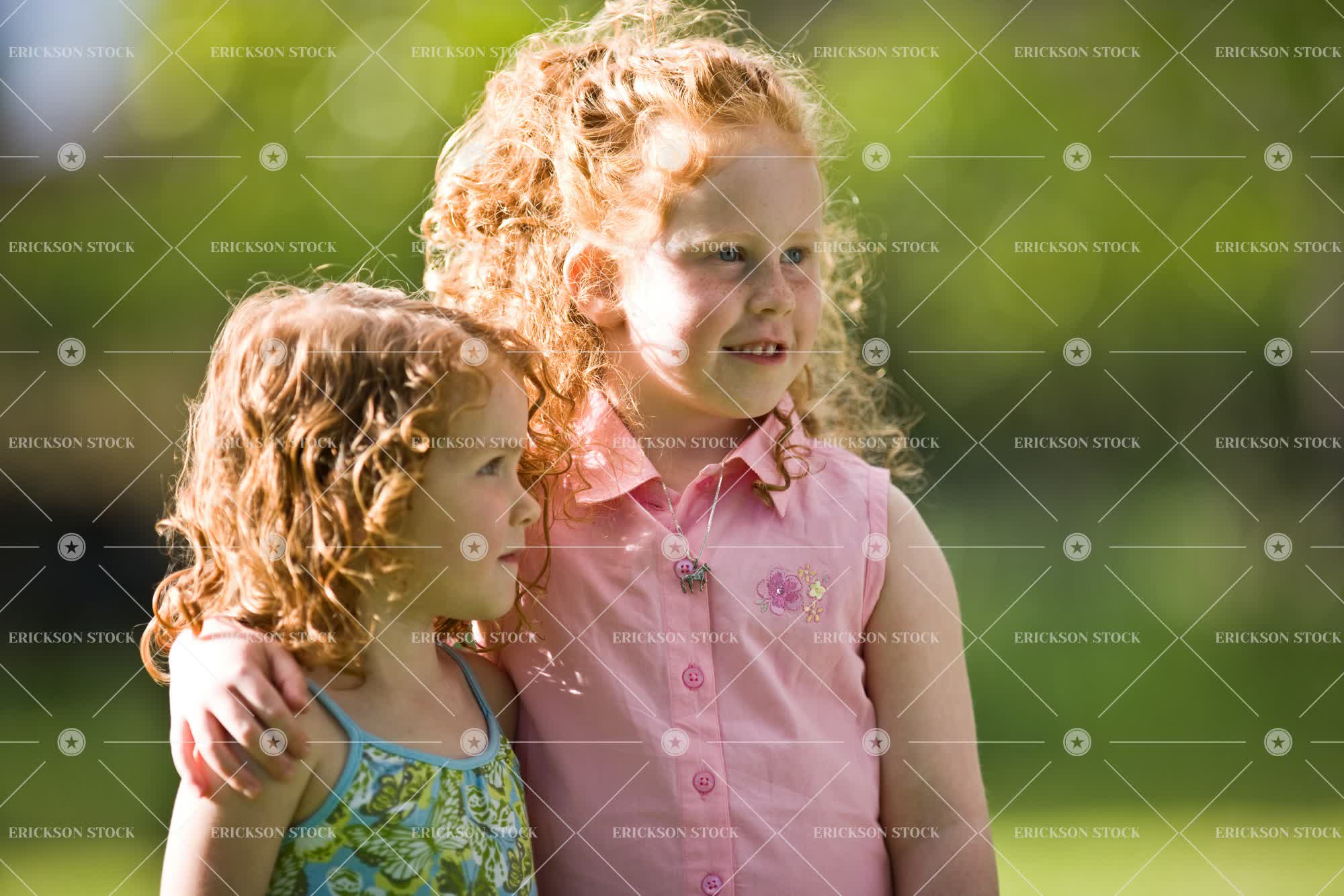 Tags affectionate, arm around, backyard, casual clothes, caucasian, child, curl, day, dress, elementary age, enjoyment, fair-skinned, female, freckle, freckled, freckles, freckling, front yard, front yards, garden, gardens, girl, girls, grass, green, half length, happiness, happy, horizontal, Innocence, innocent, kid, kids, lawn, lawns, look away, looking away, love, loving, outdoor, outdoors, outside, pink, portrait, Portraits, preschooler, preschoolers, protector, red hair, redhead, redheaded, redheads, selective focus, sibling, siblings, sister, sisters, smile, smiles, smiling, stand, standing, together, togetherness, waist up