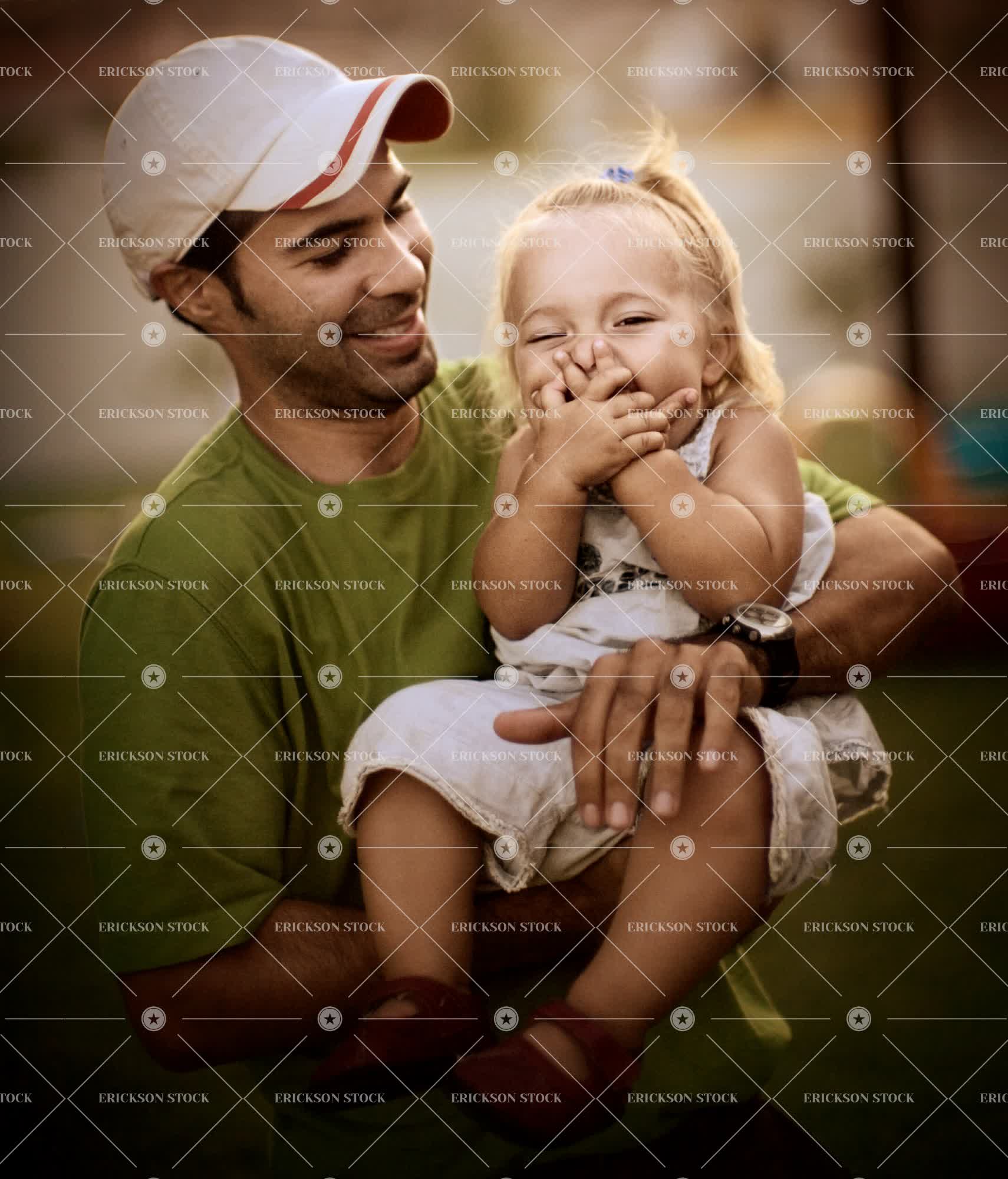 Tags baseball cap, bond, care, caucasian, child, daughter, day, enjoyment, eyes closed, family, father, female, full length, Fun, girl, happy, holding, latin american, laughing, looking at camera, man, mexican, mexico, mid adult, parent, people, smiling, standing, toddler, togetherness, two people, vertical, waist up