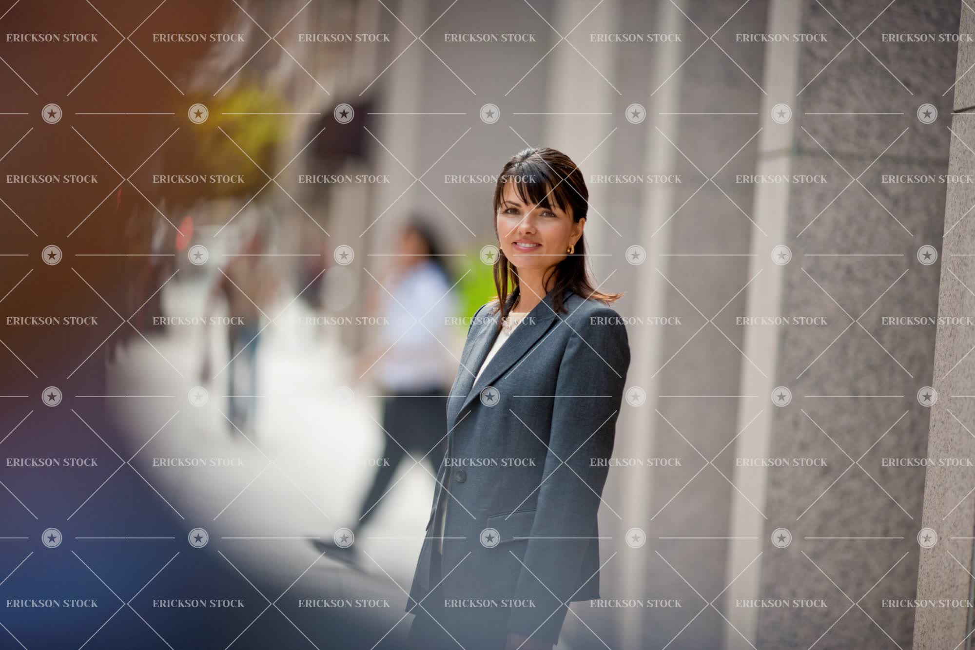 Tags adult, business, business woman, caucasian, day, executive, executives, Eye contact, female, horizontal, look at camera, looking at camera, mid adult, one person, outdoor, outdoors, outside, people, person, road, roads, selective focus, street, streets, three quarter length, well-dressed, woman, young adult