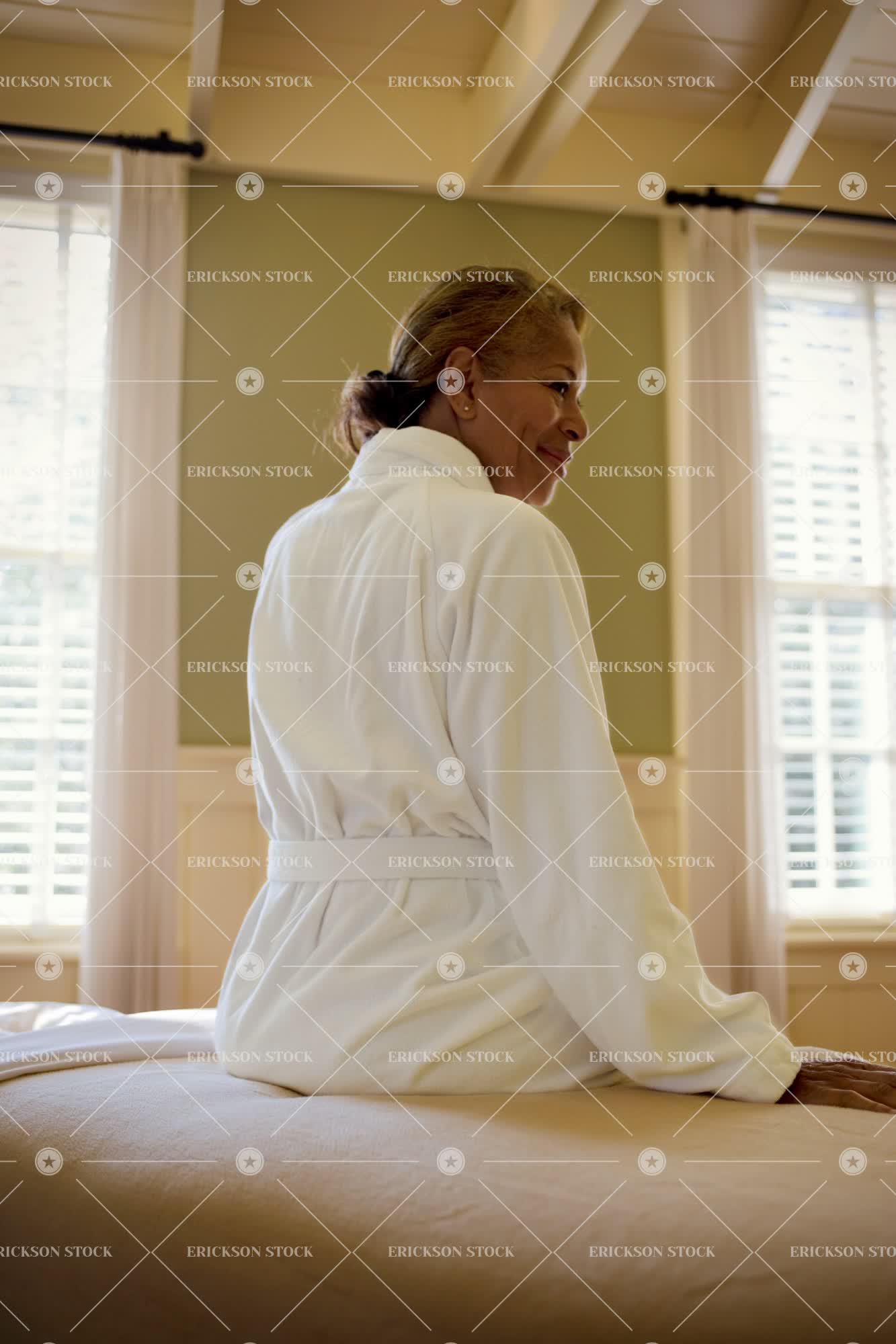 Tags adult, african american, bathrobe, bed, cheerful, clothes, delight, dressing gown, enjoyment, female, furnishing, furnishings, Furniture, garment, garments, glad, gladly, gladness, happiness, happy, indoors, jollied, jollies, jolly, latin american, lighthearted, lightheartedly, lightheartedness, living, living being, mature adult, merriment, merry, object, objects, one person, only females, only women, palmetto, people, person, persons, profile, profiles, robe, robes, sat, satisfaction, satisfied, satisfies, satisfy, satisfying, seated, Side view, sit, sits, sitting, smile, smiled, smiles, smiling, spa, thing, vertical, vertically, verticals, waist up, woman