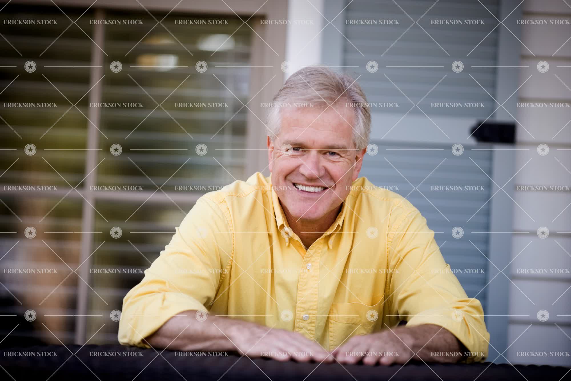 Tags caucasian, confident, day, domestic, front view, head and shoulders, horizontal, house, lifestyle, looking at camera, man, mature adult, one person, only males, only men, outdoors, palmetto, people, porch, portrait, satisfaction, smiling, surface level