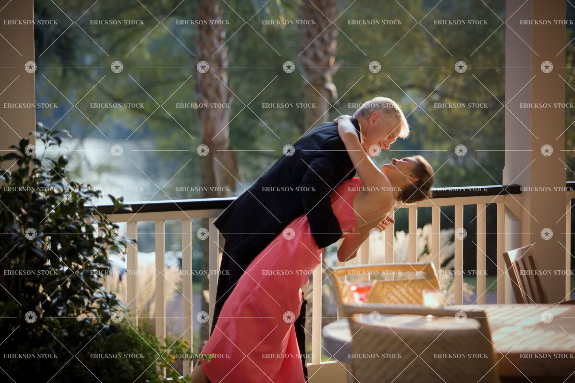 Tags alcohol, attentive, balcony, boyfriend, bush, caucasian, chair, cocktail, couple, dance, day, dip, elegant, enjoyment, face to face, female, Food and drink, friend, girlfriend, happy, heterosexual couple, holding, horizontal, hugging, Husband, leisure activity, love, male, man, mature adult, outdoors, palmetto, people, porch, profile, railing, recreation, retirement, romance, senior adult, Side view, smiling, standing, suit, table, three quarter length, together, two people, wife, woman