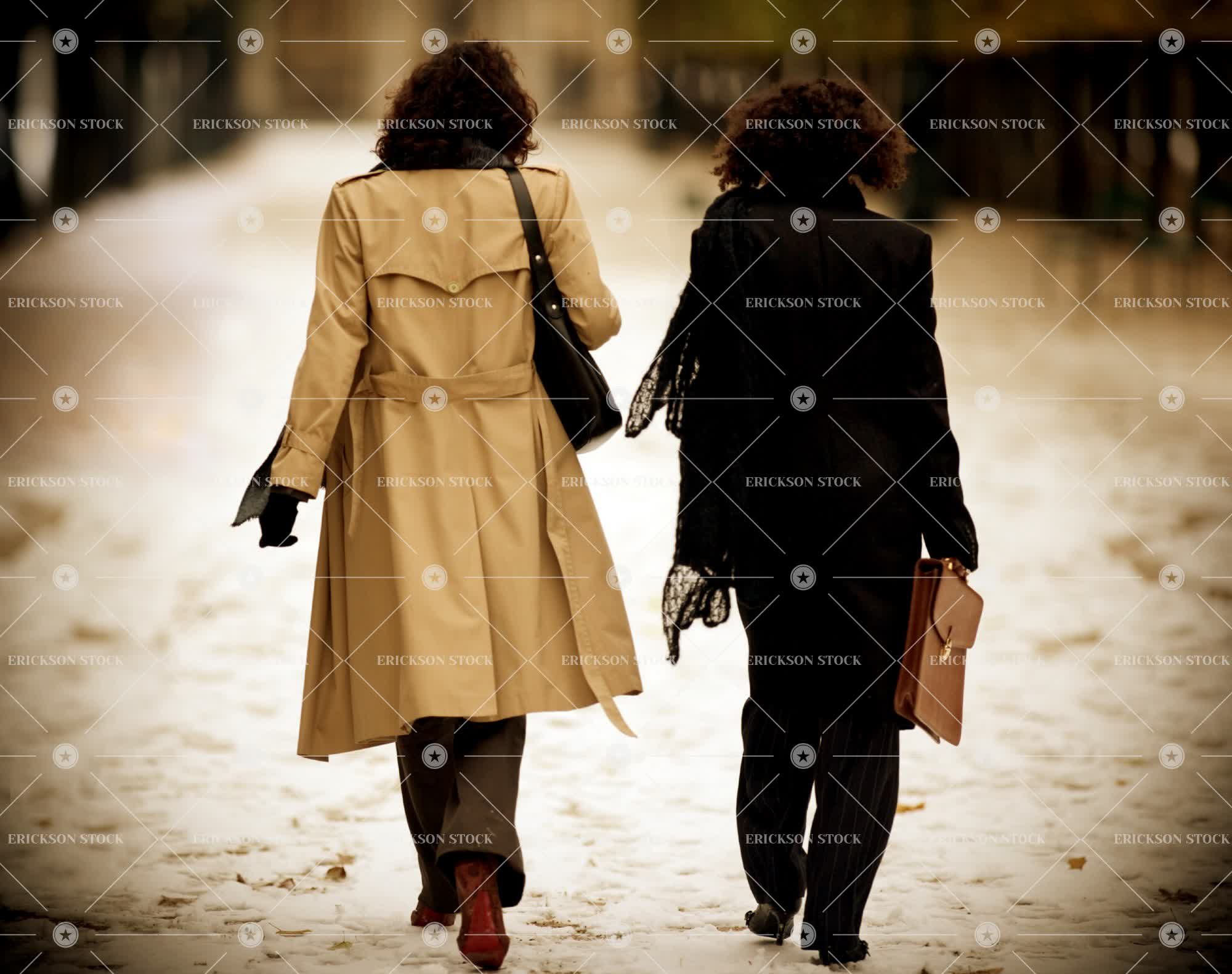 Tags adult, african american, back, back view, briefcase, business, business woman, caucasian, chill, city, cold, day, executive, executives, female, friend, friends, friendship, full length, hold, holding, holds, horizontal, mature adult, mid adult, outdoor, outdoors, outside, people, person, public space, public spaces, rear, rear view, road, roads, selective focus, side by side, street, streets, together, togetherness, trench coat, trench coats, two people, urban, urban scene, Urban scenes, walk, Walking, walks, warm clothes, warm clothing, well-dressed, winter, wintry, woman, young adult