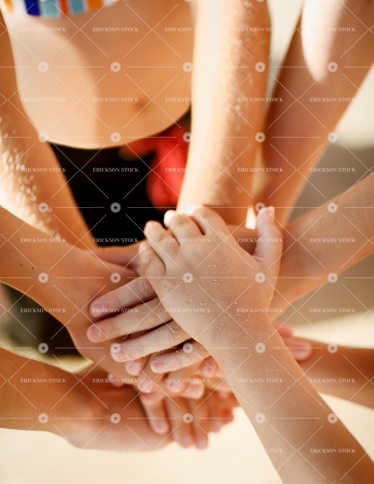 Close up of hands placed over each other.
