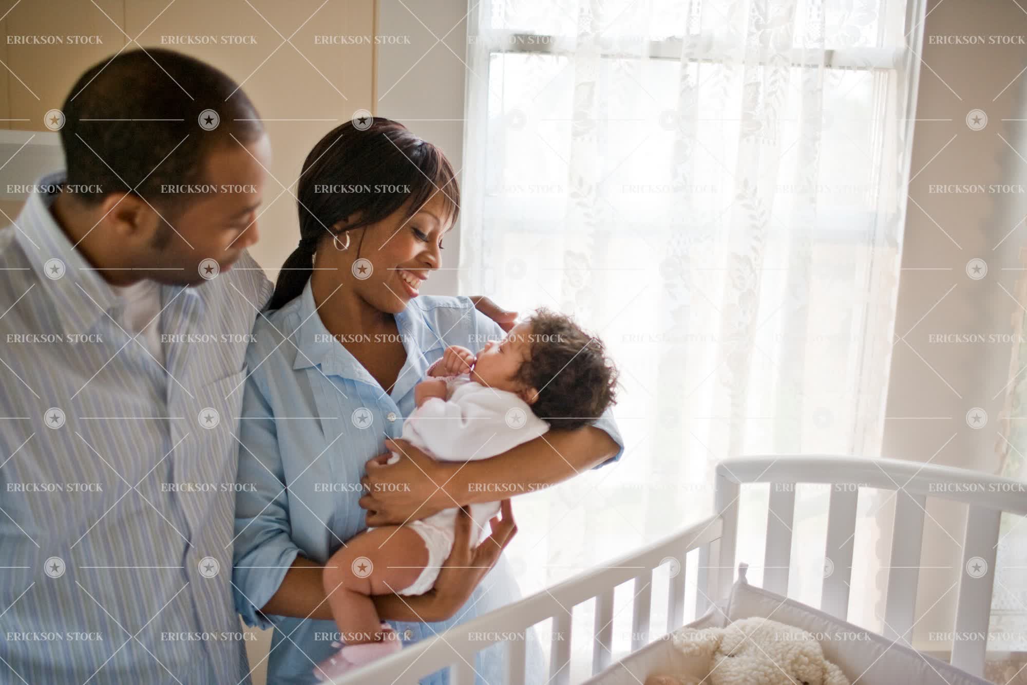 Tags adult, african american, baby, baby girl, baby's room, bedroom, begin, caregiver, carry, casual clothes, child, child's room, content, couple, crib, daughter, day, domestic, family, father, female, girl, girls, grin, grinning, half length, happiness, happy, hold, holding, home, home interior, home interiors, homes, horizontal, house, houses, Husband, husband and wife, husbands, indoor, indoors, infancy, infant, infants, inside, look at each other, looking at each other, love, male, man, marriage, married, mid adult, mom, mother, mum, mums, new life, nurseries, nursery, only child, parent, Parenthood, parenting, parents, people, relationship, relationships, selective focus, smile, smiles, smiling, spouse, spouses, together, togetherness, waist up, wife, wives, woman, young adult