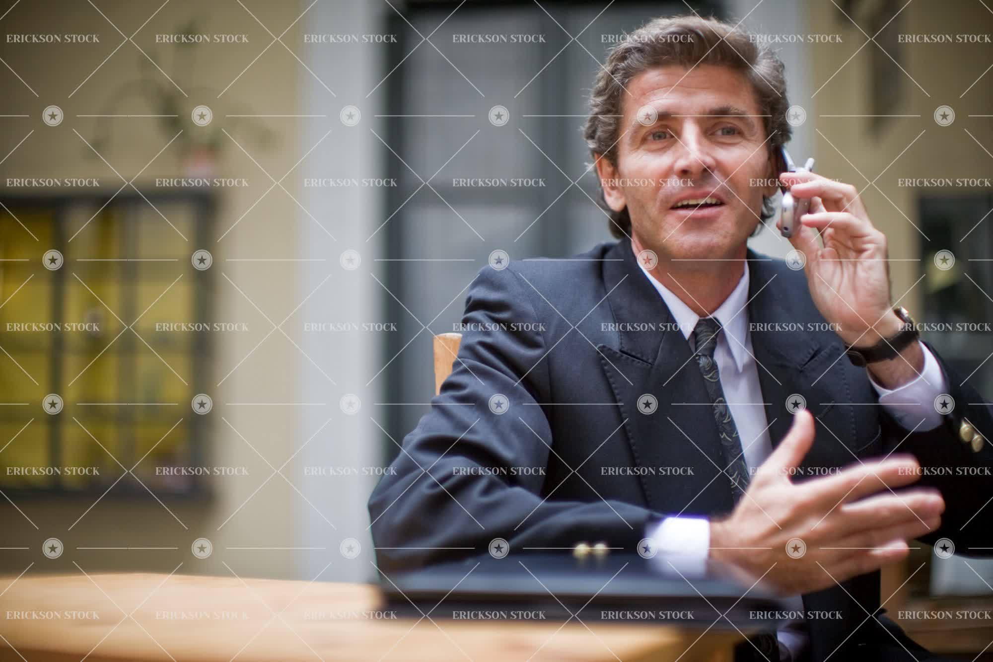 Tags adult, business, business man, cafe, cell phone, cheerful, communicate, confident, connect, copy space, copy space left, day, diary, diner, eat, eateries, eatery, enjoyment, filofax, filofaxes, Food, Food and drink, formal, formal wear, formalwear, full suit, full suits, half length, happiness, happy, horizontal, listen, listening, male, man, mature adult, mid adult, mobile, mobile phone, mobile phones, mobiles, negative space, negative space left, on the phone, one person, organizer, organizers, outdoor, outdoors, outside, patio, patios, people, person, phone, phones, Restaurant, restaurants, selective focus, sit, sitting, smile, smiles, smiling, speak, speaking, suit, suits, table, Tables, talk, talking, talks, technology, waist up, well-dressed, wireless technology