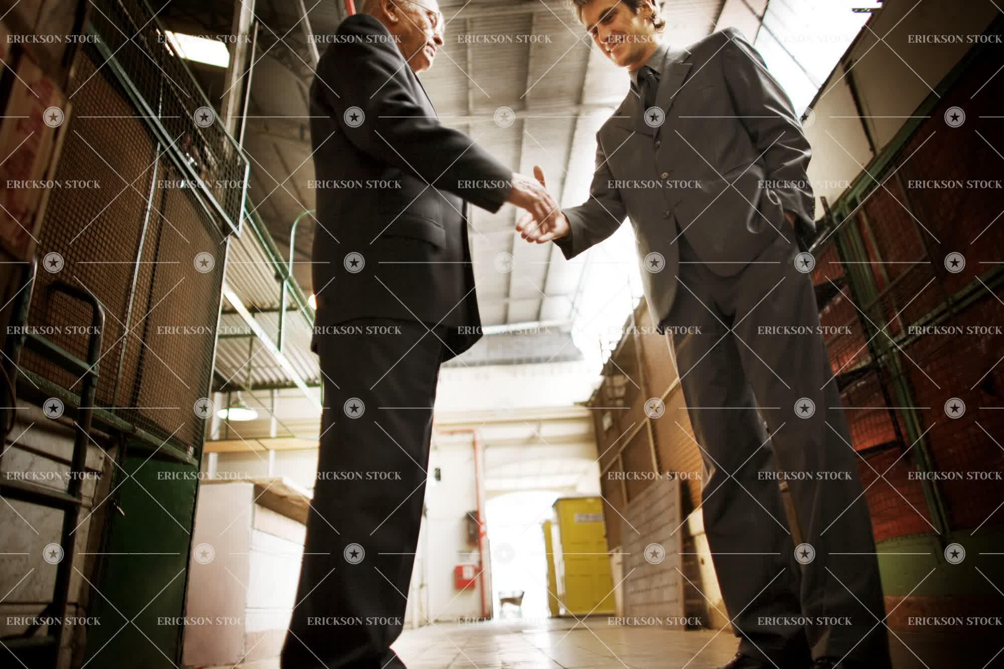 Low angle view of two businessmen shaking hands.
