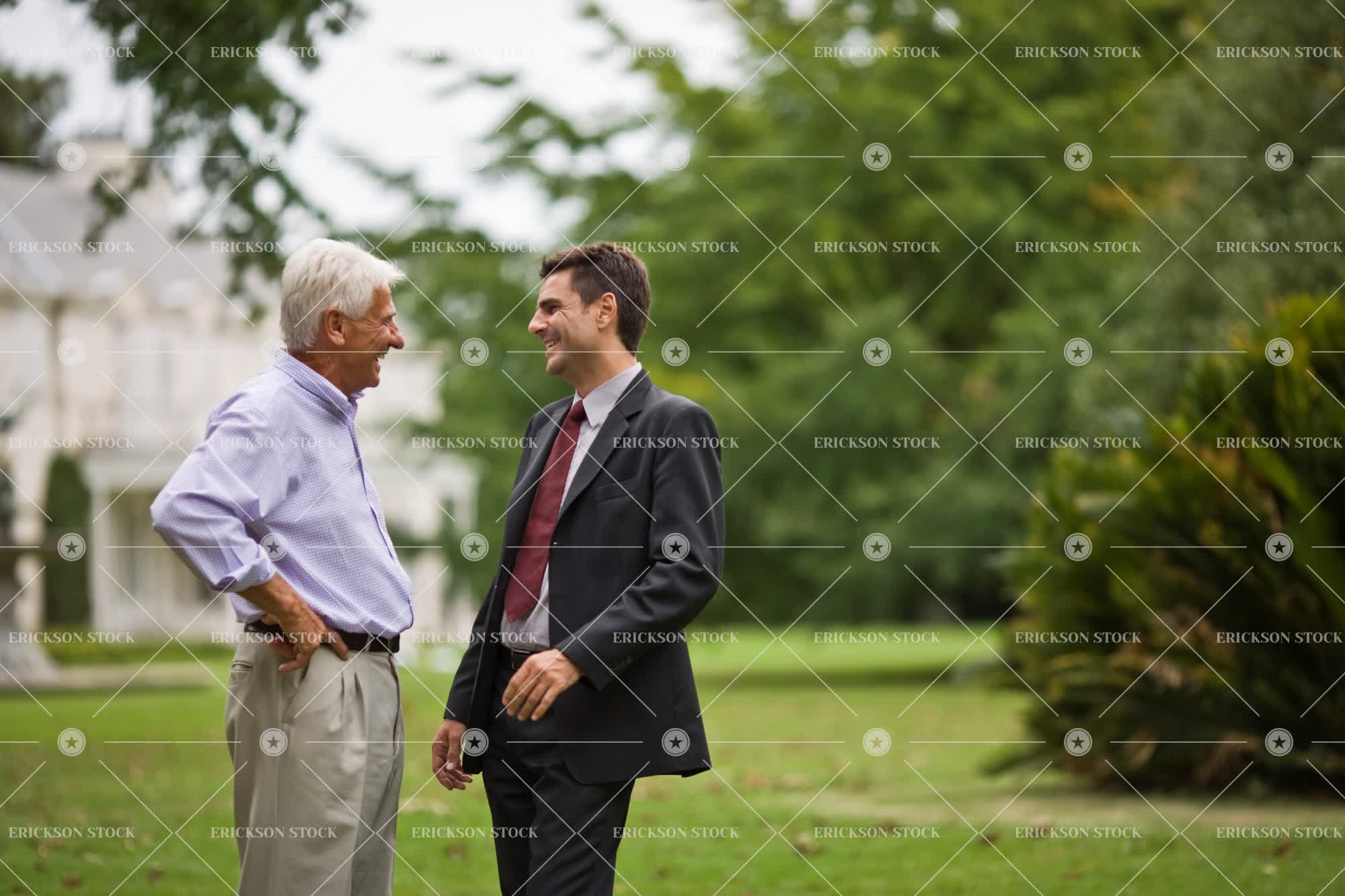 Tags adult, business, business man, casual clothes, country, countryside, day, family, father, garden, gardens, grass, horizontal, lawn, lawns, male, man, mature adult, mid adult, multi generational family, multi-generational, multigenerational family, non-urban, outdoor, outdoors, outside, people, rich, richness, rural, senior adult, two people, wealth, wealthy, well off, young adult
