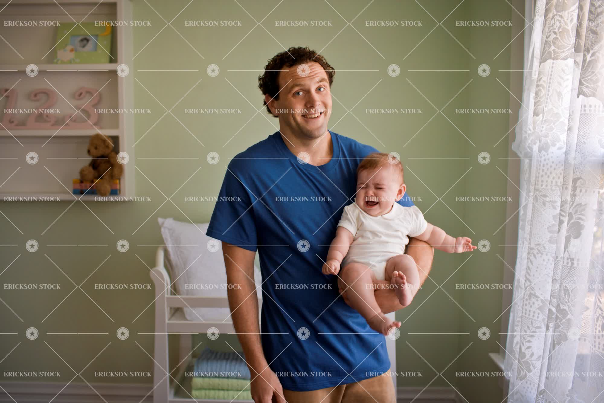 Tags adult, baby, bemused, bond, building, care, caregiver, carry, casual clothes, caucasian, child, comfort, confusion, crib, cry, day, develop, domestic, dwell, dwelling, dwellings, dwells, Eye contact, eyebrows raised, family, father, front view, generation, Generations, habitated, habitates, habitation, held, hold, holding, holds, home, homely, homes, horizontal, house, household, households, houses, housing, indoor, indoors, inexperienced, infancy, infant, infants, Innocence, innocent, inside, length, look at camera, looking at camera, male, man, mid adult, nurseries, nursery, nurture, nurtures, Nurturing, Offspring, only child, parent, parented, Parenthood, parenting, parents, paternal, paternity, patriarch, patriarchal, people, protect, Protecting, protection, protective, protects, quarter, raised eyebrows, raising eyebrows, relative, Relatives, reside, residence, residences, residential structure, residential structures, resides, shelter, stand, standing, suburban, suburbia, suburbs, t-shirt, tee shirt, three quarter length, together, togetherness, two people, uncertain, unhappy, upset, vulnerability, vulnerable, youth