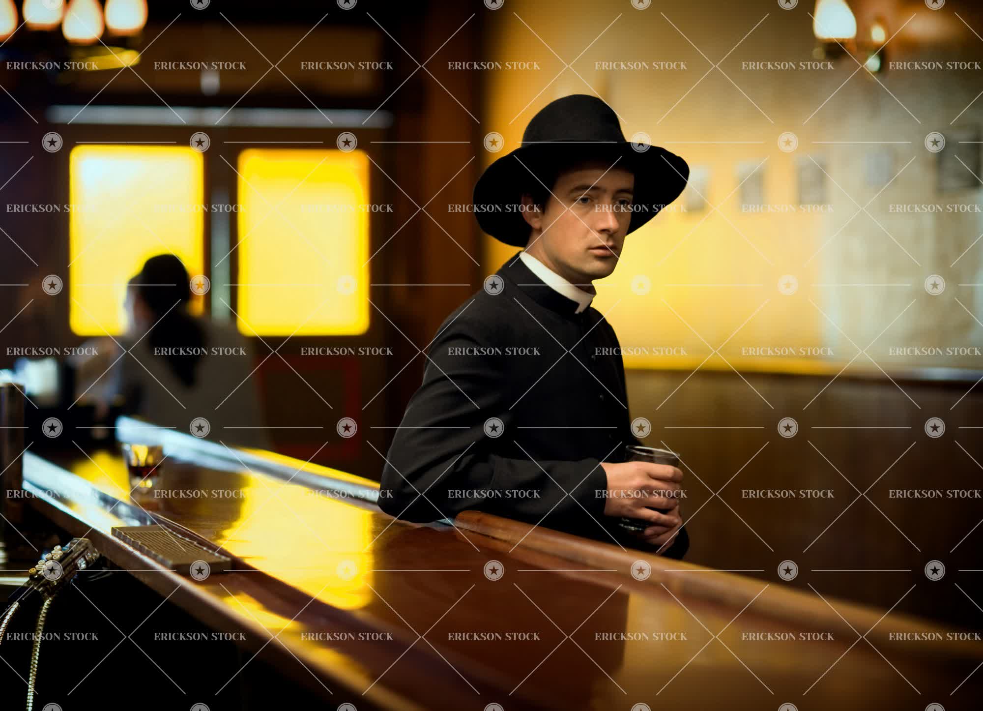 Tags accessory, adult, anxious, background people, bar, cap, caucasian, christian, clergy, client, clothes, cocktail, consider, counter, customer, faith, faiths, fellow, fellows, Food, Food and drink, foods, fret, frets, fretted, fretting, front view, front views, garment, garments, glass, glasses, guy, guys, hat, hats, headdress, headdresses, Headgear, headpiece, headpieces, held, hold, holding, holds, horizontal, horizontally, horizontals, indoor, indoors, inside, lean, leaned, leaning, leans, leant, male, man, minister, ministerial, ministerially, ministers, ministries, ministry, nerves, nervous, nervously, nervousness, one person, only males, only men, pastor, pastors, patron, patrons, people, person, persons, ponder, pondered, pondering, ponders, preacher, preachers, priest, priests, pub, pubs, rear view, relax, Relaxation, relaxed, relaxes, relaxing, Religion, religions, religious, rest, rested, Resting, rests, reverend, reverends, saloon, saloons, serious, seriously, seriousness, solemn, solemnly, somber, spiritual, spiritualism, spirituality, spiritualness, standing, stood, taproom, taprooms, thinking, two people, vicar, vicars, waist up, wear, wearing, wears, western european, worktop, worktops, worn, worried, worries, worry, worrying, young adult, youth