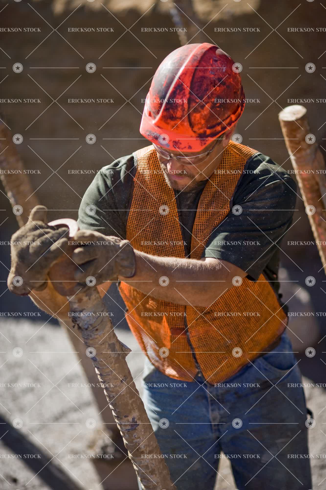 Tags adult, at work, blue jeans, building, caucasian, construction, construction site, construction worker, day, denim, develop, foundation, foundations, hard hats, hardhat, hardhats, jeans, male, man, metal, mid adult, occupation, occupations, one person, outdoor, outdoors, outside, people, person, place of work, pole, poles, progress, Protective clothing, protective eyewear, reflective clothes, reflective clothing, safety glasses, safety vest, safety vests, site, steel, three quarter length, vertical, work, worker, workers, working, young adult