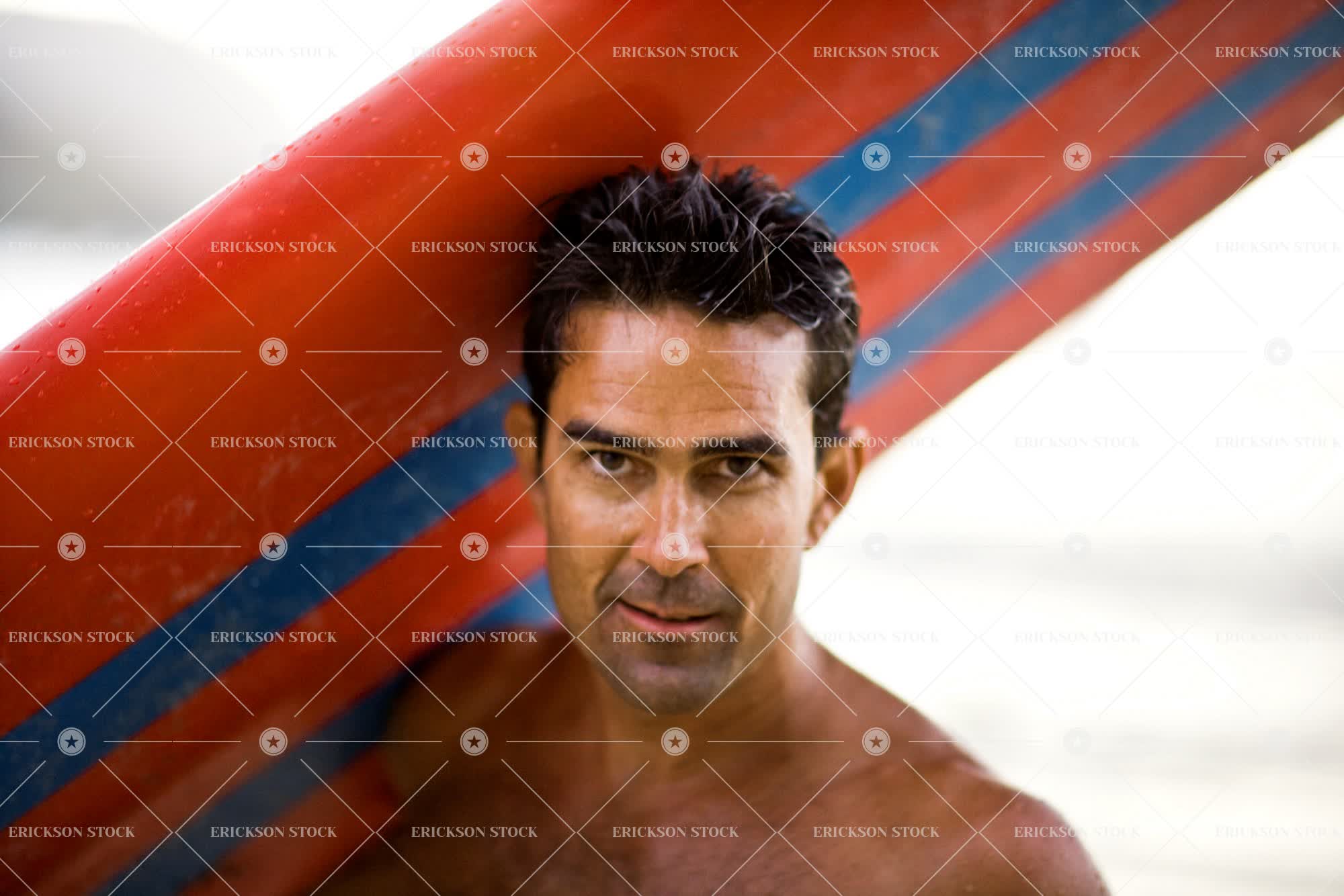 Tags adult, attractive, beautiful, carry, carry on shoulders, caucasian, day, Eye contact, good looking, handsome, head, head & shoulders, head and shoulders, head shot, headshot, horizontal, leisure, leisure activities, leisure activity, look at camera, looking at camera, male, man, mature adult, mid adult, one person, outdoor, outdoors, outside, people, person, portrait, Portraits, recreation, recreational pursuit, recreational pursuits, selective focus, shoulders, sport, Sports, Surfboard, surfboards, Surfer, surfers, water sport, wet, wet hair, young adult