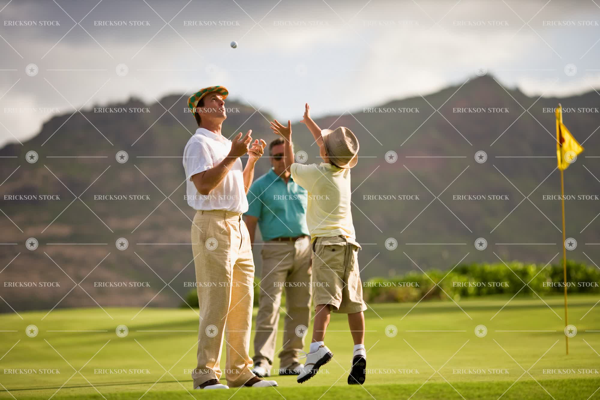 Tags adult, back, back view, boy, cap, catch, caucasian, child, country club, covered face, day, face covered, face obscured, family, father, full length, golf, golf club, golf clubs, golf course, golf courses, golf player, golf players, golfer, golfers, golfing, grass, grassy, green, happiness, happy, hat, hats, hobbies, hobby, horizontal, jump, jumping, kid, kids, lawn, lawns, leap, leaping, leisure, leisure activities, leisure activity, look up, looking up, male, man, mature adult, mid adult, obscured face, outdoor, outdoors, outside, parent, parents, people, person, Playful, Playing, playing golf, rear, rear view, recreation, recreational pursuit, recreational pursuits, selective focus, son, sport, Sports, throw, throwing, toss, tossing, Watch, watching, young adult