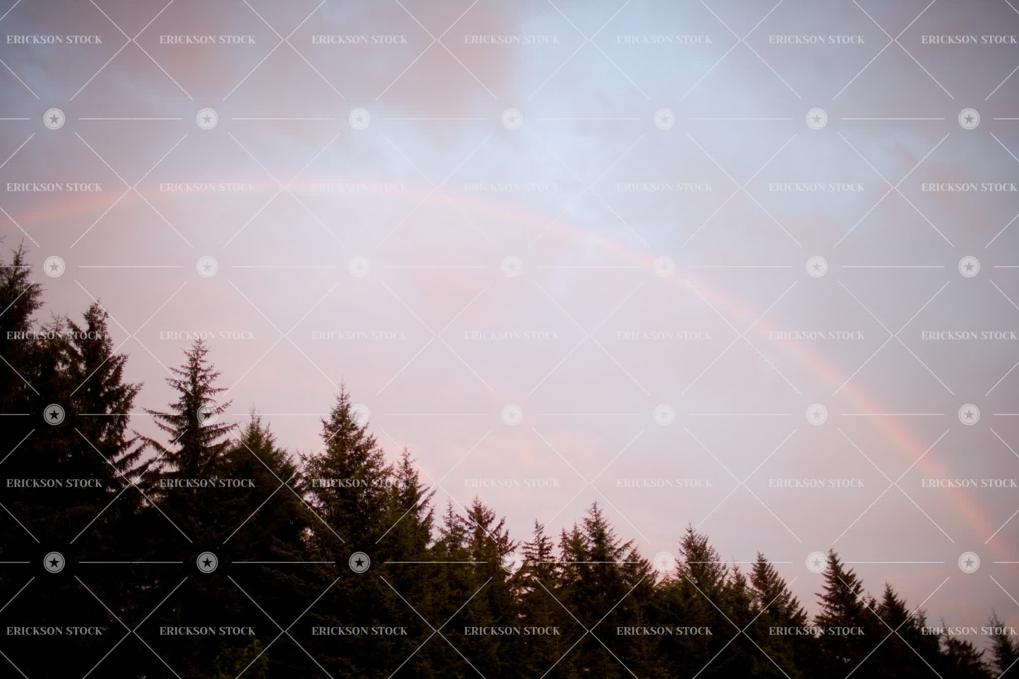 Tags canted angle, copy space, copy space top, dusk, evening, forest, low angle, low angle view, natural, nature, negative space top, nobody, oblique angle, outdoor, outdoors, outside, plant, plants, rainbow, sundown, sunset, tilt, tilted angle, tranquil, tranquil scene, tranquility, tranquillity, Tree, trees, treetop, treetops, twilight, wood, woods