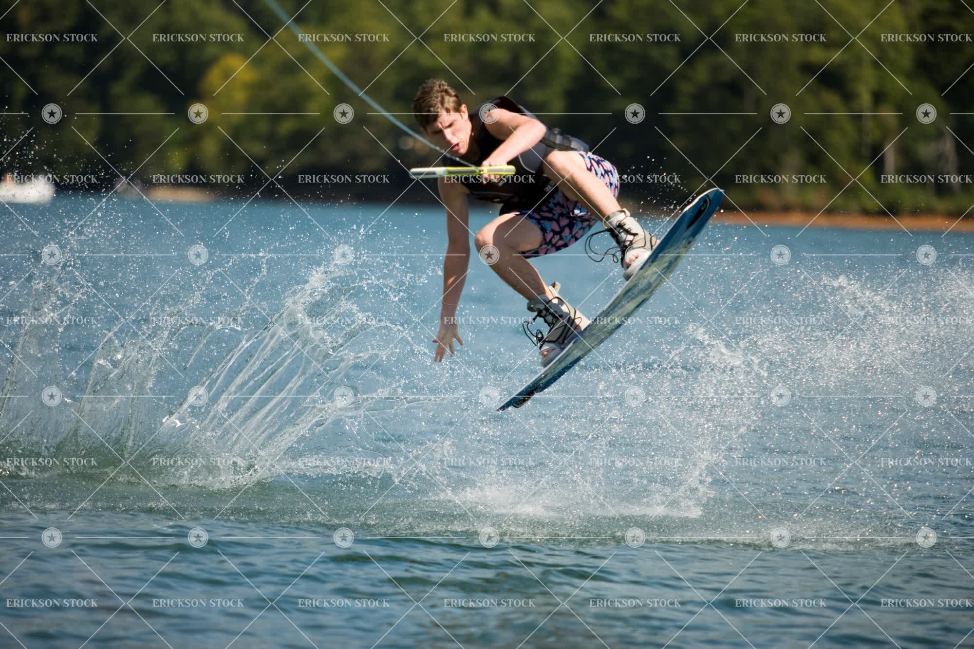 Tags ability, action, boy, caucasian, day, full length, horizontal, jump, jumping, Lake, lakes, leap, leaping, leisure, leisure activities, leisure activity, male, man, mid-air, midair, motion, moving, one person, outdoor, outdoors, outside, performance, person, recreation, recreational pursuit, recreational pursuits, selective focus, Skill, skills, sport, Sports, spray, spraying, stunt, stunts, talent, talented, talents, teenage boy, teenager, trick, tricks, wakeboard, wakeboarder, wakeboarders, wakeboarding, wakeboards, water, water sport, Water sports, young adult
