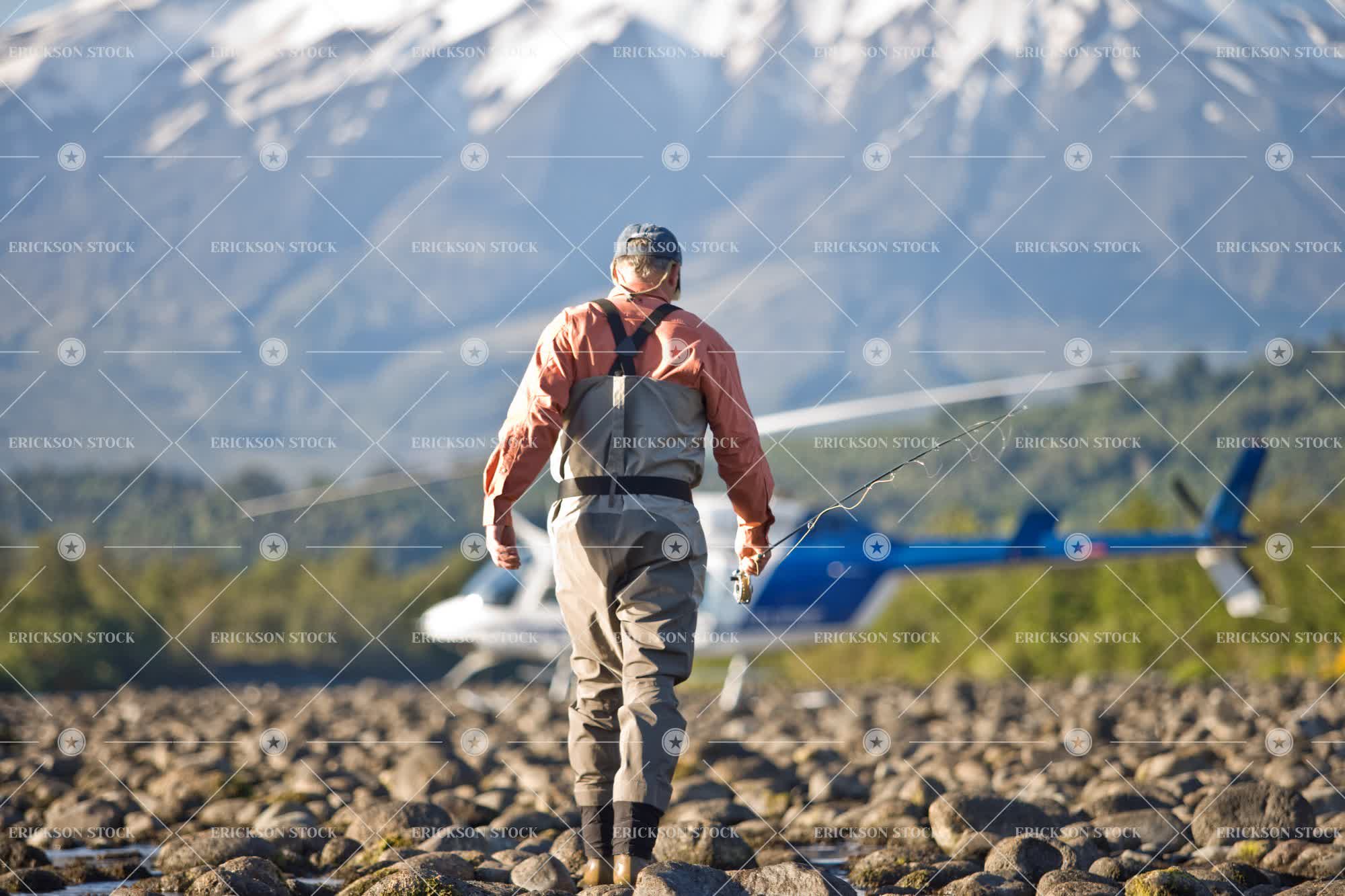Tags adult, back, back view, caucasian, day, fisherman, fishermen, fly fishing, full length, getting away from it all, helicopter, helicopters, horizontal, male, man, mature adult, mid adult, mountain, mountains, one person, outdoor, outdoors, outside, people, person, protective clothes, Protective clothing, protective gear, rear, rear view, Relaxation, relaxing, remote, remoteness, rock, rocks, rotary wing, rotorcraft, rotorcrafts, selective focus, senior adult, solitude, standing, stone, stones, Transportation, walk, Walking, walks
