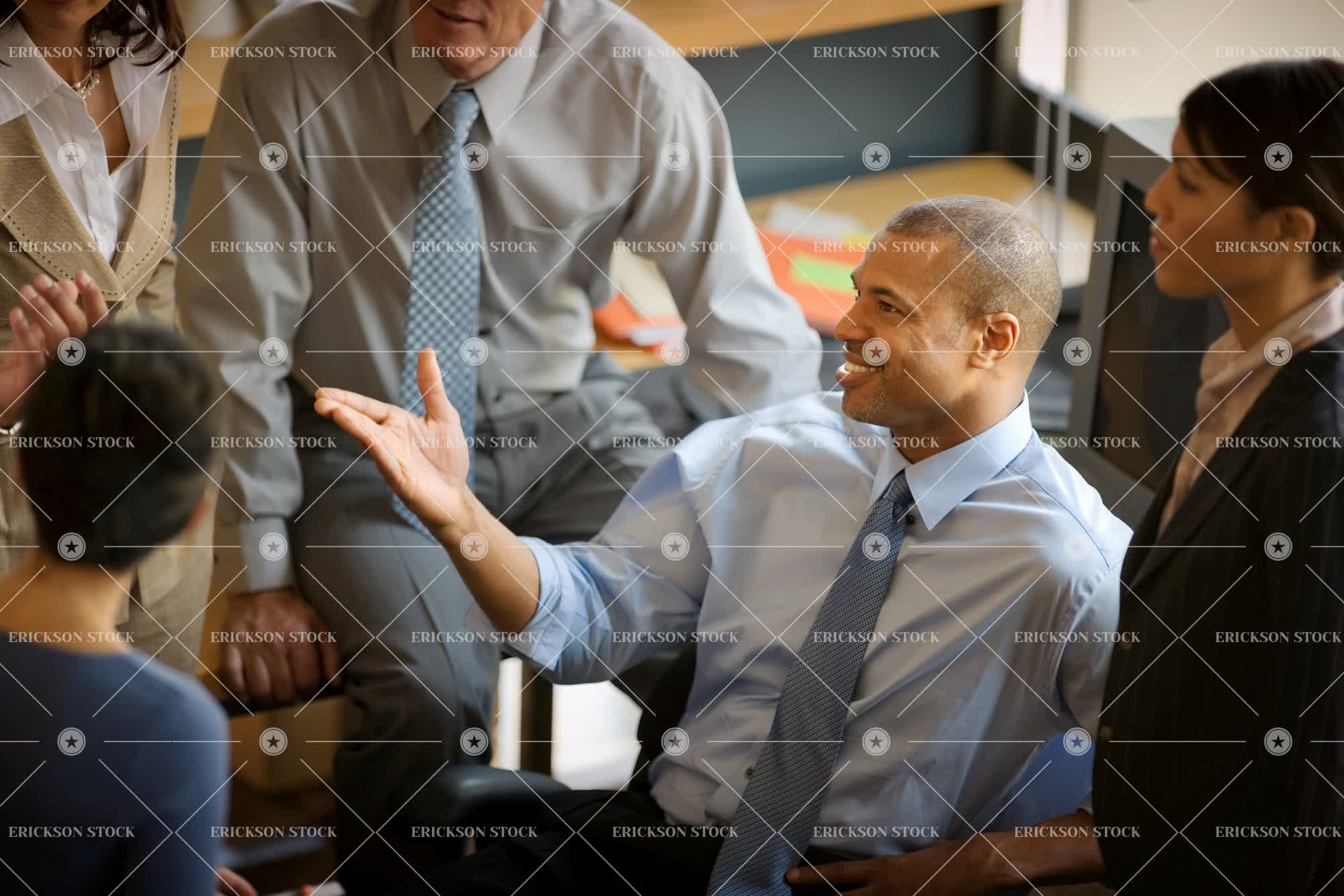 Tags adult, african american, appreciate, associate, bliss, business, business man, business woman, caucasian, chat, cheerful, colleague, communicate, companion, conference, conversation, delight, enjoyment, enterprise, enterprises, executive, fellow, fellows, female, front view, front views, gaieties, gaiety, gaily, gather, gathered, gathering, gatherings, gathers, gay, gesture, gestured, gestures, Gesturing, glad, gladly, gladness, gleeful, gleefully, gleefulness, gratification, gratifications, gratified, gratify, gratifying, gratifys, group, groups, guy, guys, hands on hips, happiness, happy, head, head and shoulders, hear, heard, hearing, hears, high angle, high angle view, horizontal, horizontally, horizontals, indoor, indoors, inside, jollied, jollies, jolly, joy, joyful, joyous, latin american, lean, leaned, leaning, leanness, leans, leant, lighthearted, lightheartedly, lightheartedness, listen, listened, listener, listeners, listening, listens, male, man, medium group of people, meet, meeting, meetings, meets, merriment, merry, met, mid adult, mid section, midsection, motioned, motioning, occupation, occupations, of african descent, office, offices, partner, people, person, persons, pleased, pleasing, pleasure, profile, profiles, rejoice, rejoiced, rejoices, rejoicing, relished, relishing, sat, satisfaction, satisfied, satisfies, satisfy, satisfying, seated, shoulders, Side view, side views, signaled, signaling, sit, sits, sitting, smile, smiled, smiles, smiling, speak, speaking, speaks, spoken, standing, stood, talk, talked, talker, talkers, talking, talks, torso, torsos, waist up, western european, white, woman, workplace, workplaces