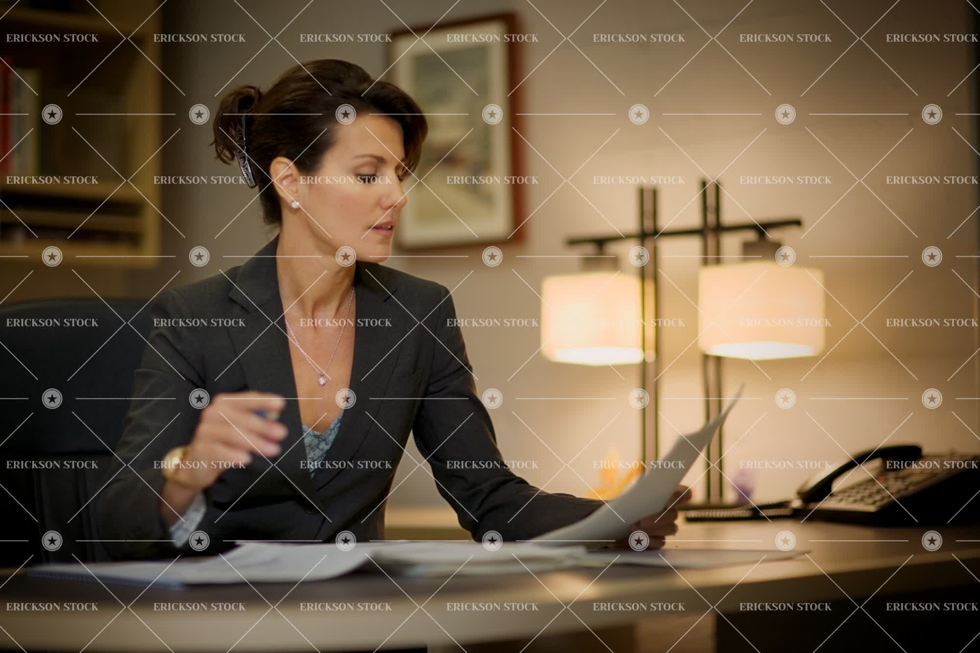 Tags adult, business, business woman, caucasian, communicate, concentrate, confident, consider, contemplate, desk, enterprise, enterprises, executive, female, focus, focused, focuses, focusing, furnishing, furnishings, Furniture, held, hold, holding, holds, horizontal, horizontally, horizontals, implement, implements, indoor, indoors, inside, latin american, mid adult, occupation, occupations, office, offices, one person, only females, only women, paper, papers, paperwork, pen, pens, people, person, persons, phone, phones, ponder, pondered, pondering, ponders, profile, profiles, read, reader, readers, reading, reads, sat, seated, Side view, side views, sit, sits, sitting, technical, technological, technologies, technology, Telephone, telephones, thing, thinking, western european, white, woman, workplace, workplaces, writing instrument, writing instruments