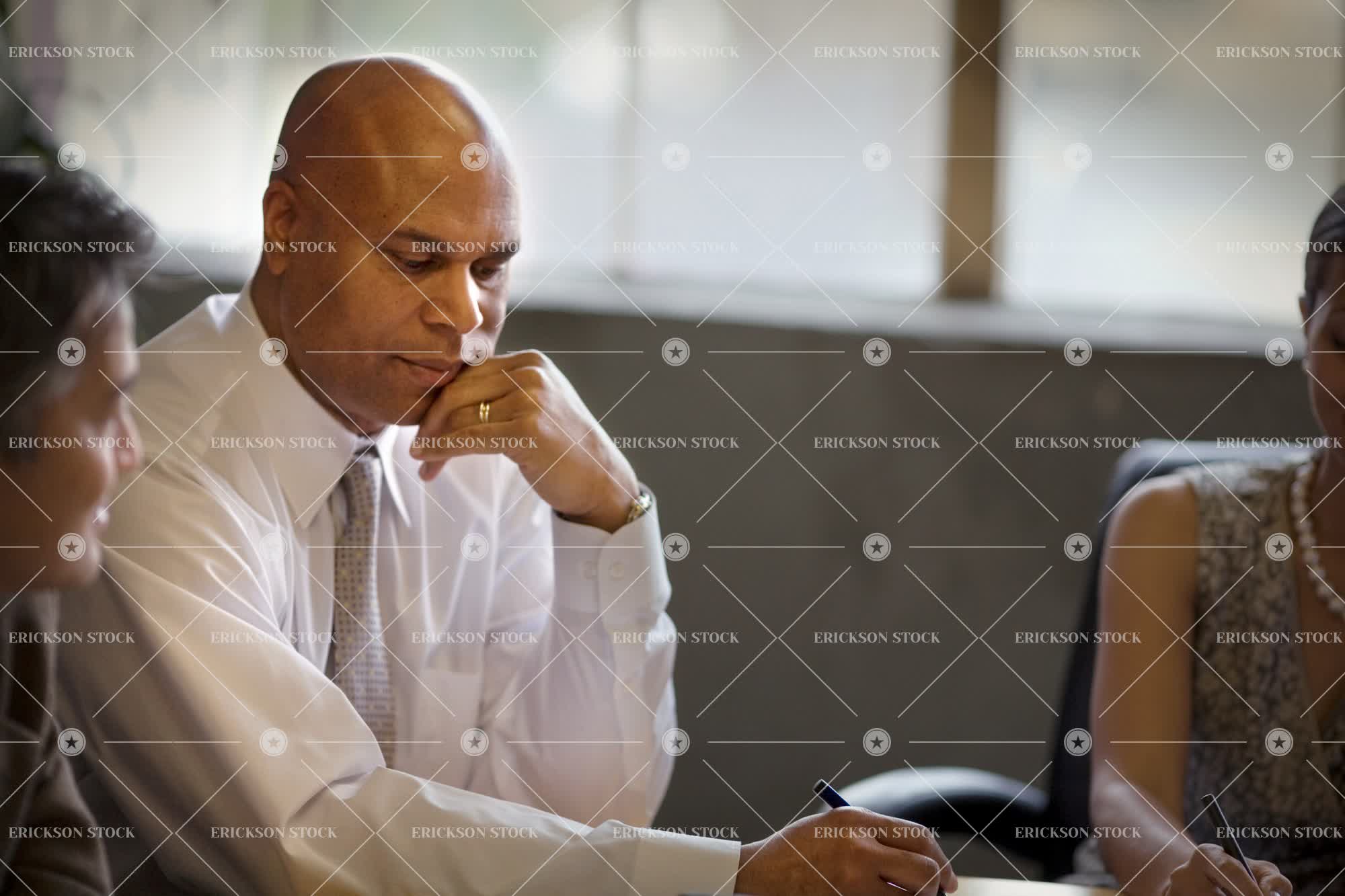 Tags adult, african american, business, business man, communicate, companion, conference, consider, enterprise, enterprises, event, events, executive, fellow, fellows, gather, gathered, gathering, gatherings, gathers, guy, guys, head & shoulders, head and shoulders, head in hands, held, high angle, high angle view, hold, holding, holds, horizontal, horizontally, horizontals, implement, implements, indoor, indoors, inside, male, man, meet, meeting, meetings, meets, met, mid adult, of african descent, office, offices, partner, pen, pens, people, person, persons, ponder, pondered, pondering, ponders, sat, seated, sit, sits, sitting, thing, thinking, workplace, workplaces, write, writes, writing, writing instrument, writing instruments, writings, written, wrote