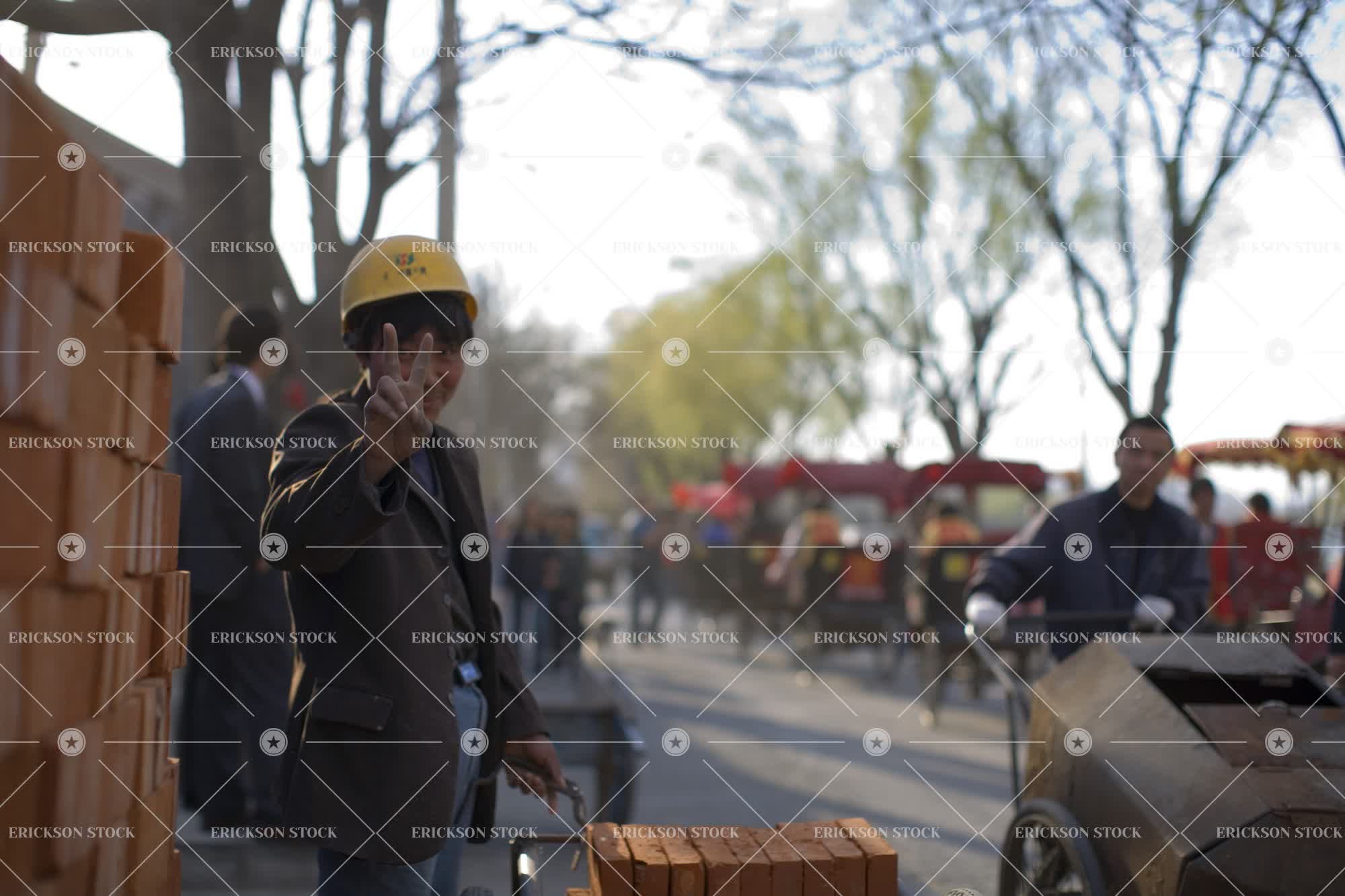 Tags accessory, adult, asian, background people, brick, building, carriage, clothes, construction, construction worker, day, defend, exterior, exteriors, fellow, fellows, front view, front views, garment, garments, gesture, gestured, gestures, Gesturing, group, groups, guy, guys, hard hats, hard-hat, hat, hats, helmet, helmets, horizontal, horizontally, horizontals, journey, journeyed, journeying, journeys, looking at camera, male, man, mid adult, motioned, motioning, occupation, occupations, only males, only men, oriental, orientals, outdoor, outdoors, outside, people, person, persons, portrait, Portraits, portraiture, propel, propelled, propelling, propels, propulsion, propulsions, protect, protected, Protecting, protection, protects, push, pushed, pushes, pushing, road, roads, roadway, roadways, safe, safeguard, safeguards, Safety, safety-hat, safety-hats, security, shove, shoved, shoves, shoving, signaled, signaling, smile, smiled, smiles, smiling, standing, stepped, stepping, stood, street, streets, stride, strides, striding, strode, symbol, symbolic, symbolically, symbols, three quarter length, toil, toiled, toiling, toils, traffic, transit, transport, Transportation, transported, transporting, transports, travel, traveled, traveling, travelled, travelling, travels, trip, trips, two people, vehicle, vehicles, walk, walked, Walking, walks, work, worked, worker, workers, working, works