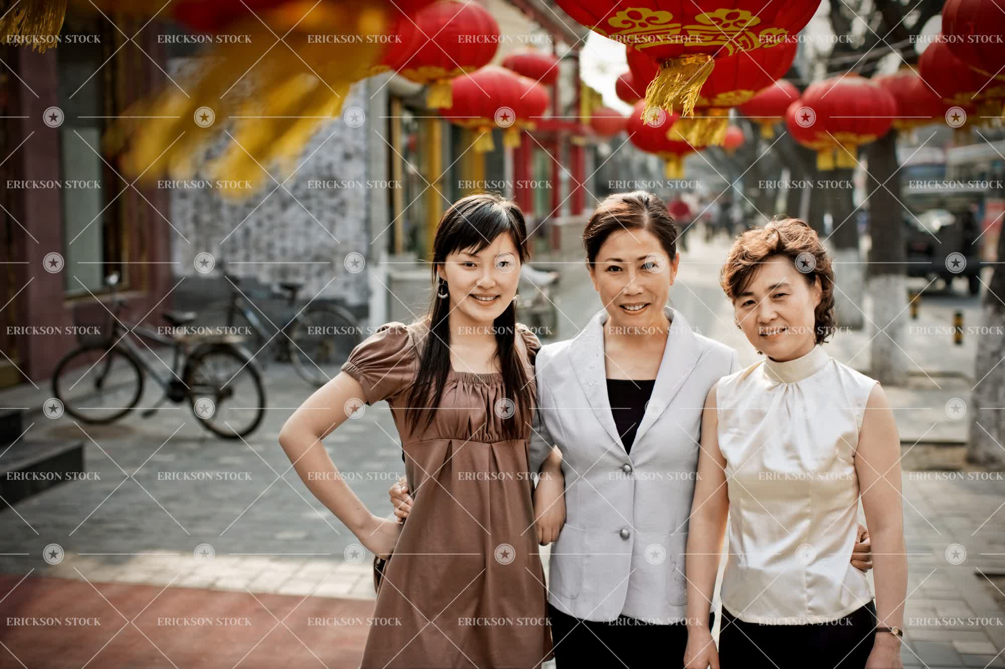 Tags arm around, asia, asian, background people, china, chinese culture, day, decoration, Eye contact, footpath, footpaths, friend, friends, friendship, front view, happiness, happy, look at camera, looking at camera, outdoor, outdoors, outside, people, people in the background, portrait, Portraits, selective focus, smile, smiling, stand, standing, three quarter length, together, togetherness, walkway, walkways