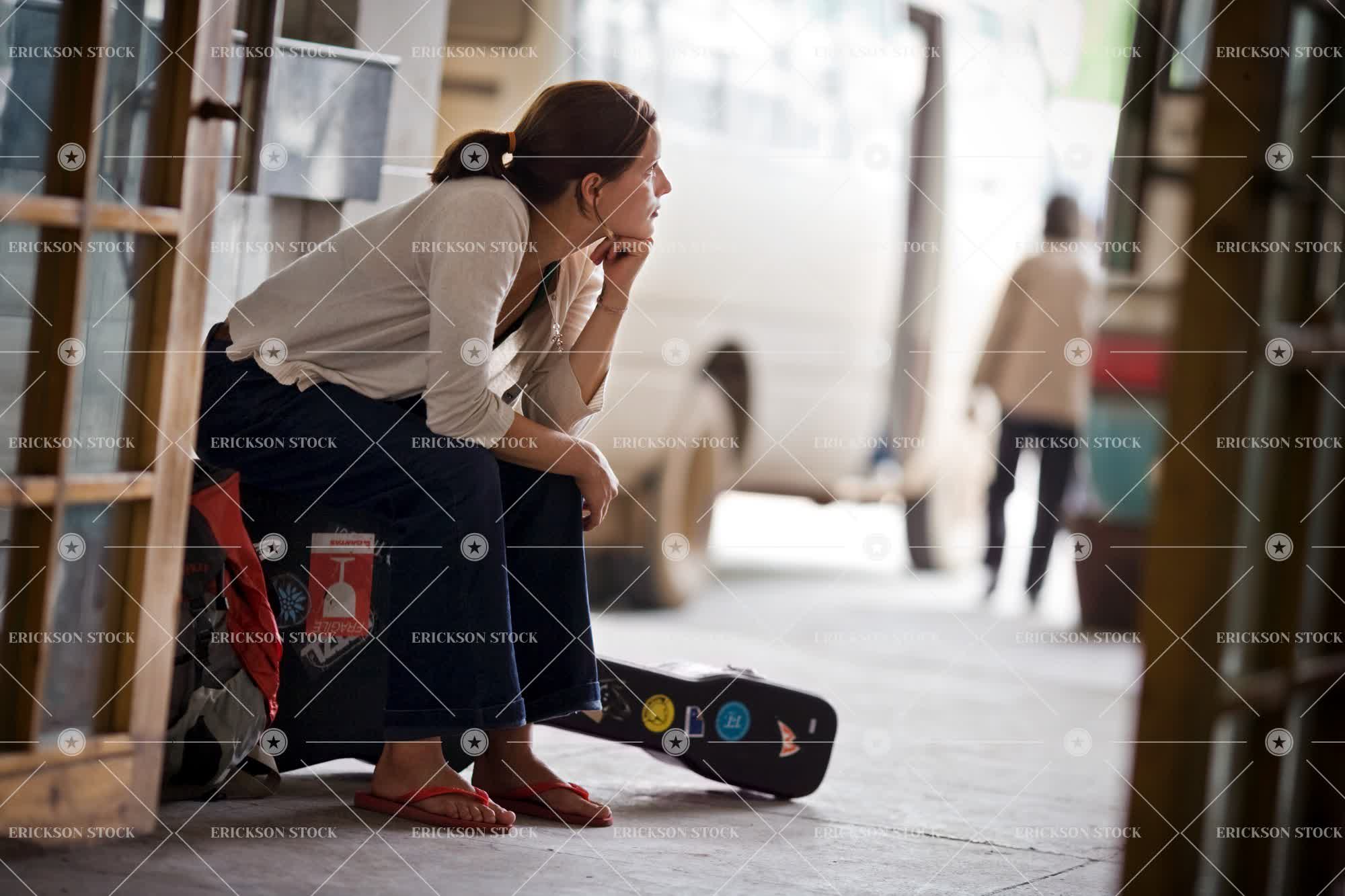 Tags adult, adventure, asia, background people, backpacker, bag, bored, brunette, car, cardigan, casual clothes, caucasian, china, day, enjoyment, exploration, explore, exploring, female, flip flop, flip flops, footwear, foreign, foreigner, foreigners, globetrotter, Guitar, guitar case, guitar cases, hair back, hair tied, hair tied back, hair tied up, hair up, holiday, holidays, horizontal, jandals, mid adult, one person, outdoor, outdoors, outside, patience, patient, people, people in the background, person, sandal, sandals, selective focus, sit, sitting, thong, thongs, tourism, tourist, tourists, transport, Transportation, travel, traveller, travellers, travelling, trip, Vacation, vacations, van, vans, vehicle, vehicles, wait, waiting, woman, young adult