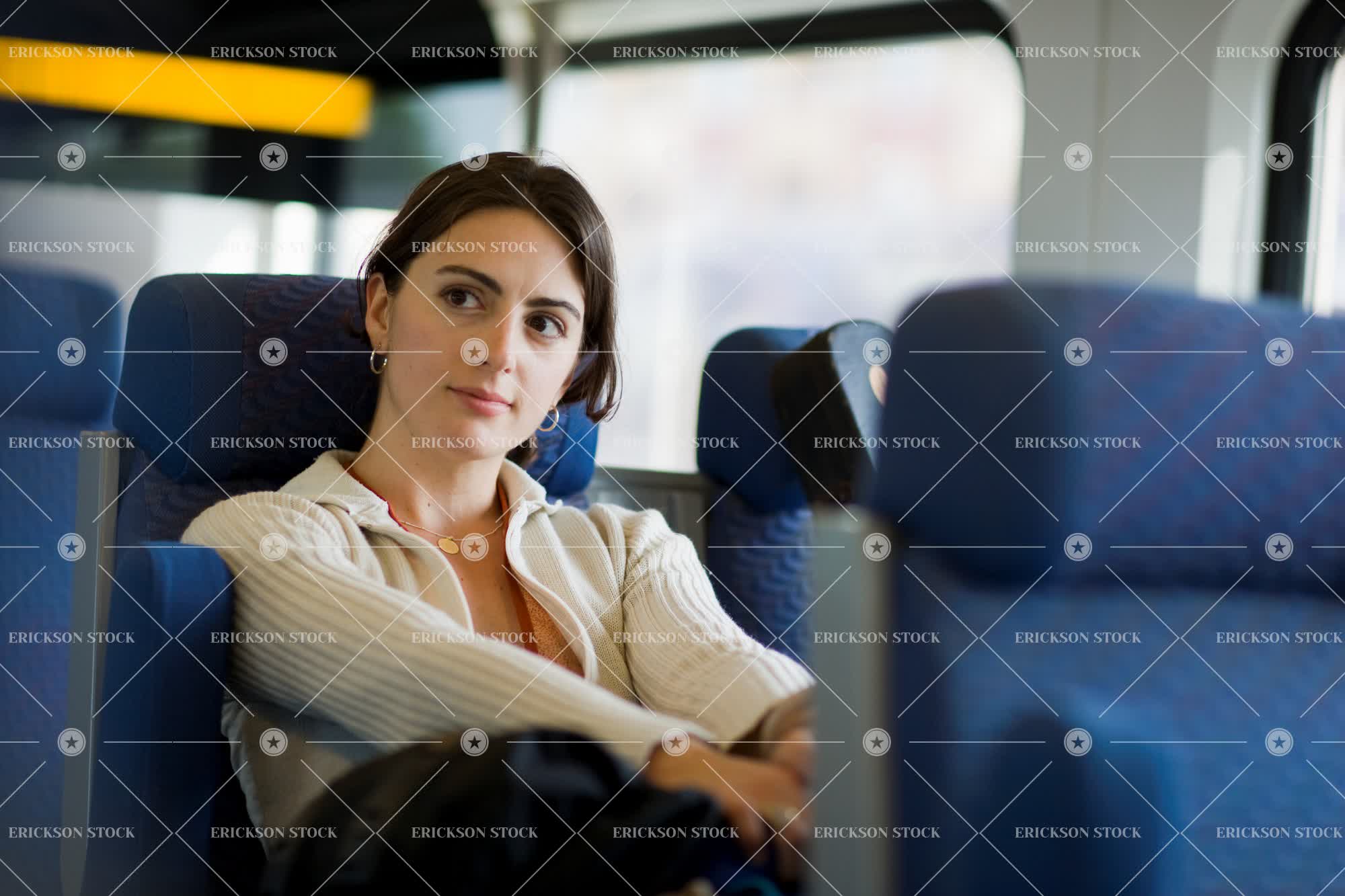 Tags adult, brunette, caucasian, day, female, head, head & shoulders, head and shoulders, head shot, headshot, horizontal, journey, journeys, on the move, one person, outdoor, outdoors, outside, person, public transport, public transportation, selective focus, shoulders, sit, sitting, train, trains, transport, Transportation, travel, traveller, travellers, travelling, vehicle, vehicles, woman, young adult