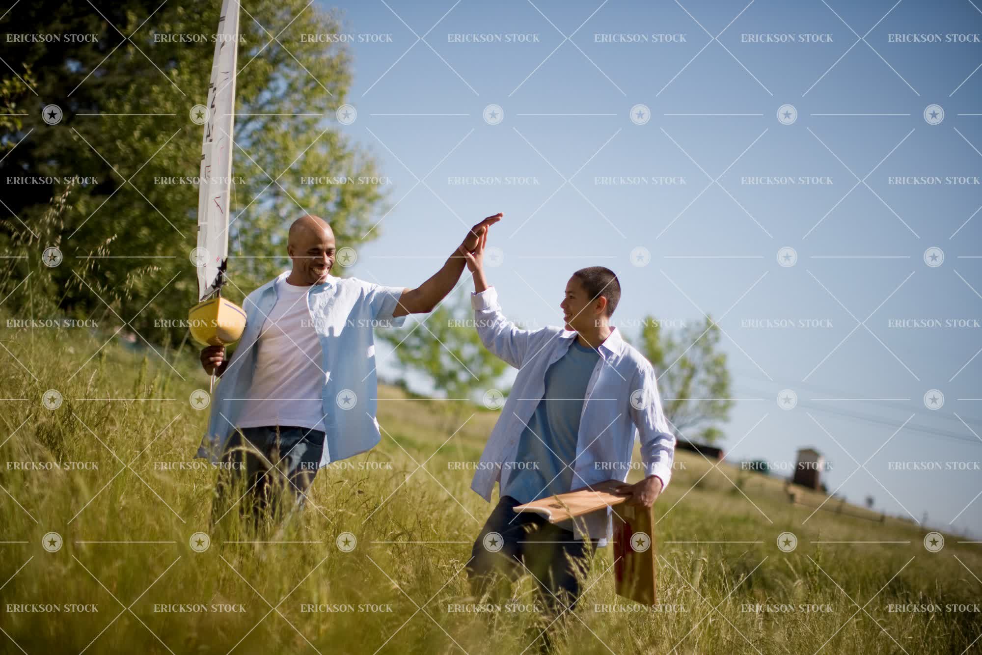 Tags adult, african american, boat, bond, boy, canted angle, casual clothes, child, copy space, copy space top, craft, day, family, father, gesture, Gesturing, grass, grassy, happiness, happy, high five, high fives, high fiving, hobbies, hobby, horizontal, leisure, leisure activities, leisure activity, male, man, mature adult, mid adult, model, model boat, model boats, models, negative space, negative space top, oblique angle, outdoor, outdoors, outside, parent, parents, people, recreation, recreational pursuit, recreational pursuits, selective focus, smile, smiling, son, teenage boy, teenager, three quarter length, tilt, tilted angle, together, togetherness, toy boat, toy boats, two people, walk, Walking, walks, young adult