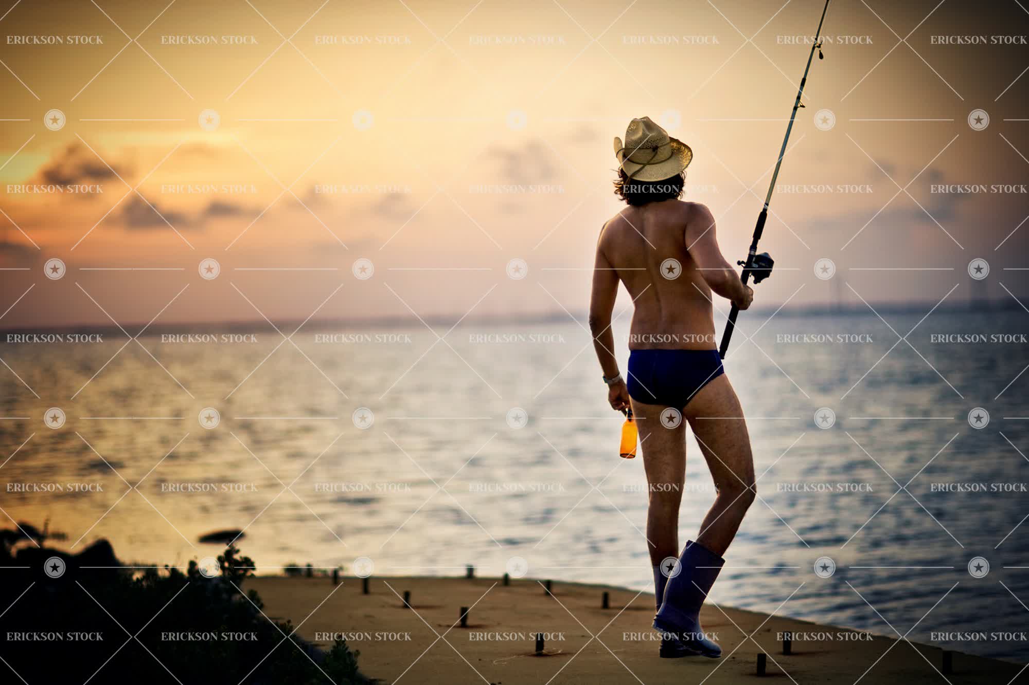 Tags adult, alcohol, beer, drink, dusk, evening, fishing, fishing rod, fishing rods, full length, funny, gumboot, gumboots, hat, hats, hobbies, hobby, hold, holding, horizontal, Humor, humorous, humour, humourous, leisure, leisure activities, leisure activity, male, man, ocean, oceans, one person, outdoor, outdoors, outside, person, recreation, recreational pursuit, recreational pursuits, rubber boot, rubber boots, sea, seas, selective focus, speedo, speedos, Straw hat, straw hats, sundown, sunset, swimwear, twilight, water, wellies, wellingtons