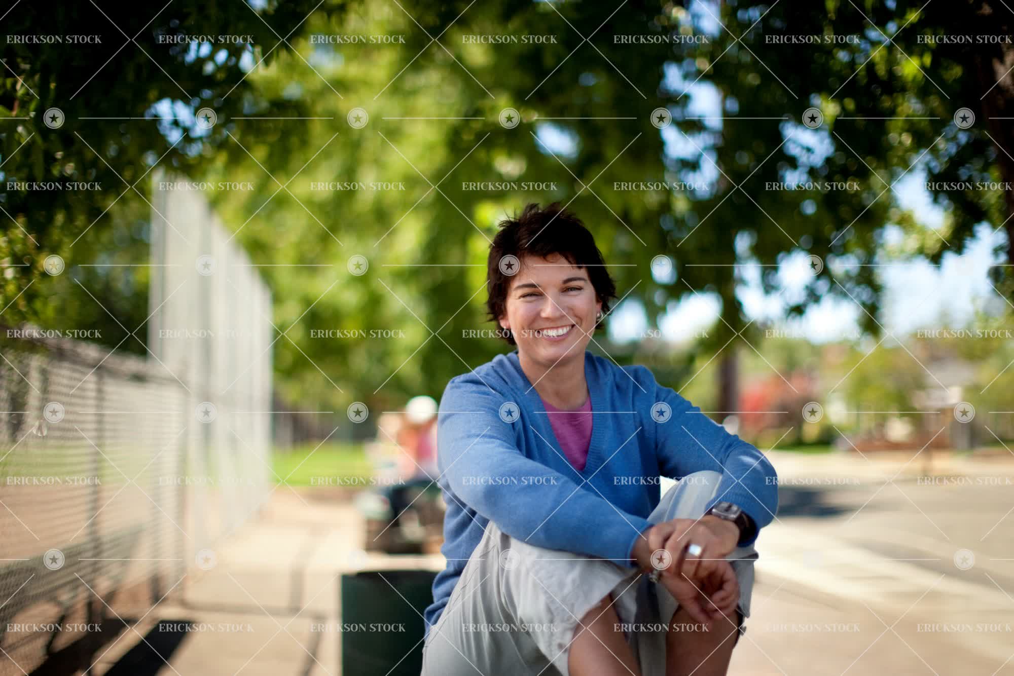 Tags adult, brunette, casual clothes, caucasian, cheerful, day, delight, enjoyment, Eye contact, female, Fun, garden, gardens, hands clasped, hands together, happiness, happy, having fun, horizontal, joy, joyful, leisure, leisure activities, leisure activity, look at camera, looking at camera, mature adult, mid adult, one person, outdoor, outdoors, outside, Park, parks, people, person, portrait, Portraits, public park, public parks, public space, public spaces, recreation, recreational pursuit, recreational pursuits, selective focus, short hair, sit, sitting, smile, smiling, three quarter length, weekend activities, weekend activity, woman