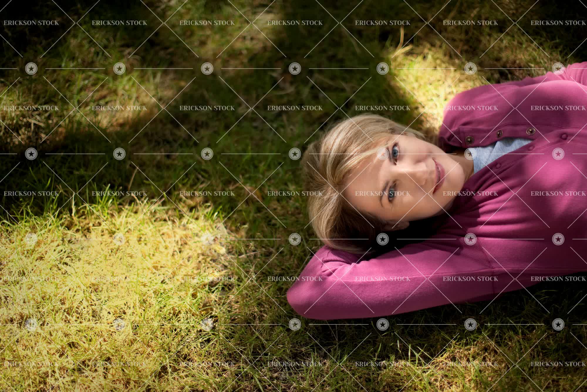 Tags adult, blond, casual clothes, caucasian, contemplate, content, copy space, day, directly above, Eye contact, female, garden, gardens, half length, hand behind back, hands behind back, horizontal, leisure, leisure activities, leisure activity, lie down, lie on back, look at camera, looking at camera, Lying down, lying on back, mature adult, mid adult, negative space, one person, outdoor, outdoors, outside, overhead, Park, parks, pensive, people, person, pleased, portrait, Portraits, public park, public parks, public space, public spaces, recreation, recreational pursuit, recreational pursuits, selective focus, take a break, taking a break, thinking, thoughtful, towhead, waist up, weekend activities, weekend activity, woman