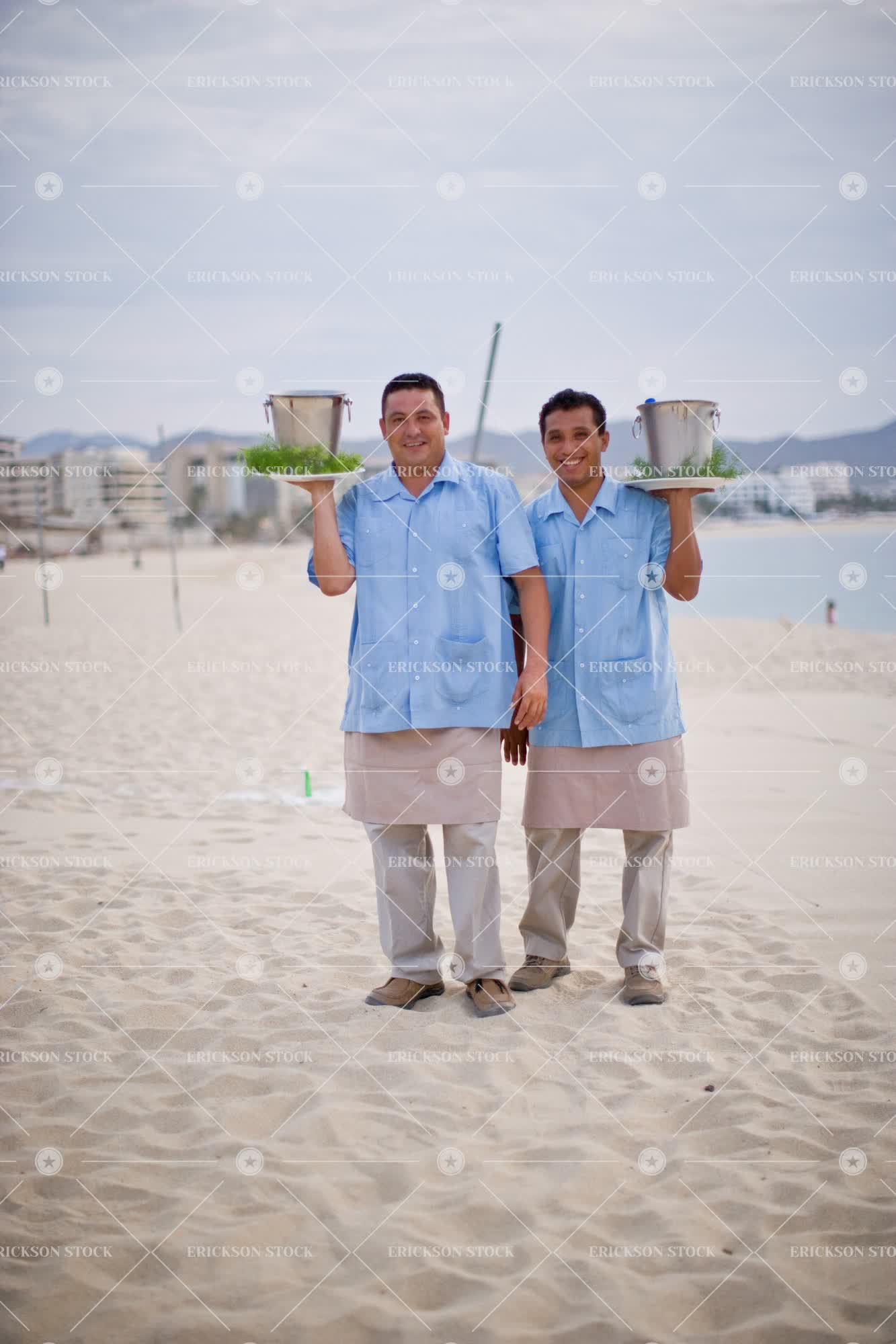 Tags accommodation, adult, balance, beach, coast, colleague, day, drink, Eye contact, focus on foreground, Food and drink, full length, happiness, happy, hold, holding, holiday, holidays, hotel, hotels, ice bucket, ice buckets, latin american, leisure, leisure activities, leisure activity, look at camera, looking at camera, male, man, mature adult, mid adult, next to, outdoor, outdoors, outside, person, recreation, recreational pursuit, recreational pursuits, resort, resorts, seaside, selective focus, server, servers, service, side by side, smile, smiling, tourist destination, tourist destinations, tourist resort, tourist resorts, travel, travel destination, travel destinations, two people, Vacation, vacations, vertical, waiter, waiters, young adult