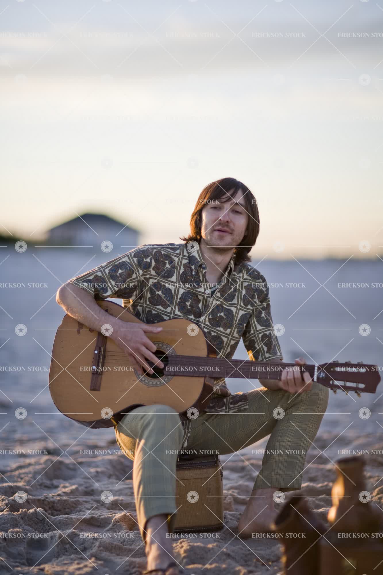 Tags 1960s style, 1970s style, acoustic guitar, adult, beach, caucasian, copy space, copy space top, day, focus on foreground, full length, Guitar, instrument, instruments, keyword, male, man, mature adult, Musical instrument, musical instruments, negative space, negative space top, one person, outdoor, outdoors, outside, people, person, play, Playing, playing guitar, playing instrument, playing instruments, playing musical instrument, playing musical instruments, relax, Relaxation, relaxed, relaxes, relaxing, retro, sand, seaside, seasides, senior adult, shoreline, shorelines, sing, Singing, sit, sitting, subject bottom, Summer, summer time, summertime, teenager, vertical, Vintage, water, waterfront, waterfronts, young adult