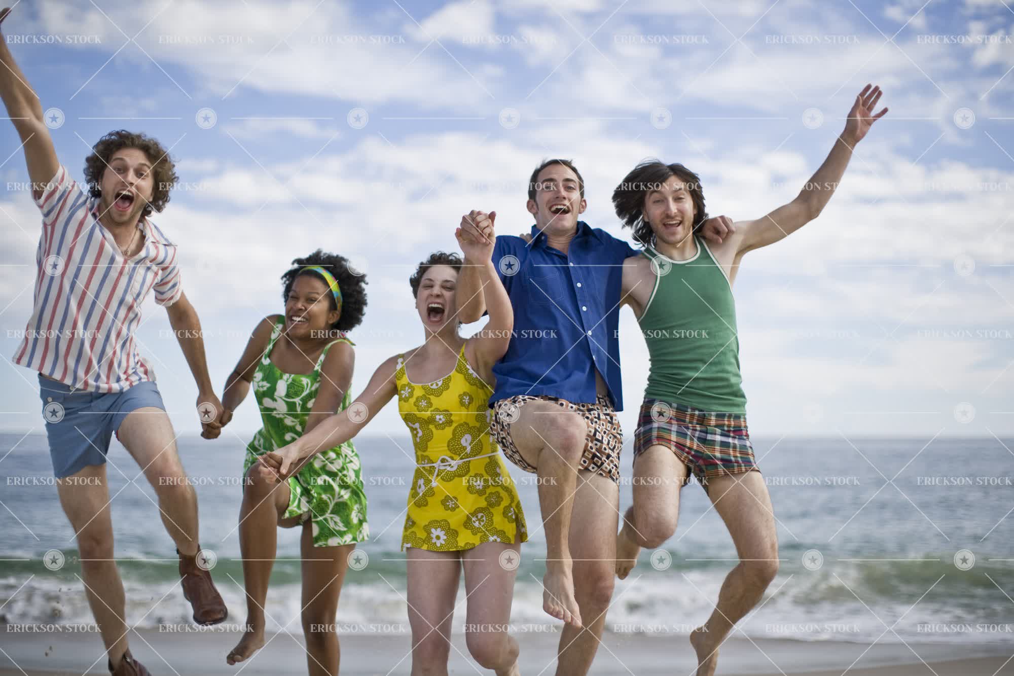 Tags 1960s style, 1970s style, adult, african american, arm raised, barefoot, beach, caucasian, companion, day, enthusiasm, enthusiastic, excited, excitement, female, focus on foreground, friend, friends, friendship, full length, grin, grinning, hand in hand, happiness, happy, hold hand, hold hands, holding hand, Holding hands, horizontal, jump, jumping, keyword, laughing, male, man, mature adult, mid-air, mouth open, open mouth, outdoor, outdoors, outside, people, retro, seaside, seasides, senior adult, shoreline, shorelines, smile, smiles, smiling, Summer, summer time, summertime, teenager, together, togetherness, vigor, Vintage, water, waterfront, waterfronts, woman, young adult
