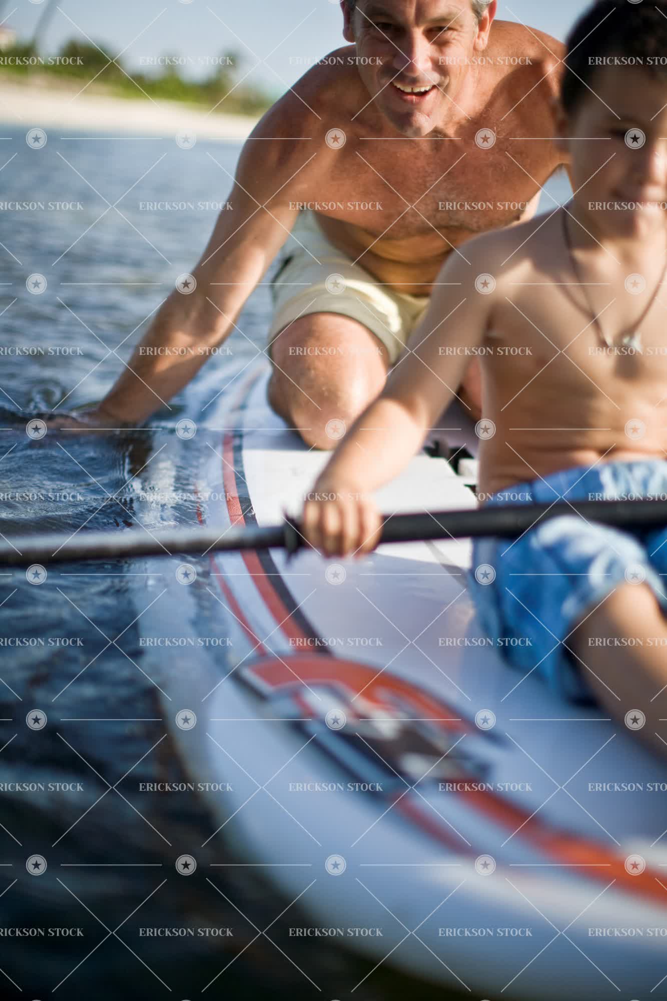 Tags adult, beach, boy, child, cropped, day, elementary age, enjoyment, family, father, happiness, happy, holiday, holidays, kid, kids, kneel, kneeling, looking at camera, male, man, mature adult, mid adult, Oar, oars, ocean, outdoor, outdoors, outside, paddle, paddles, paddling, parent, parents, people, sea, seaside, seasides, selective focus, shoreline, shorelines, smile, smiles, smiling, son, surf, Surfboard, surfboards, swimming trunks, swimwear, three quarter length, together, togetherness, two people, Vacation, vacations, vertical, water, waterfront, waterfronts